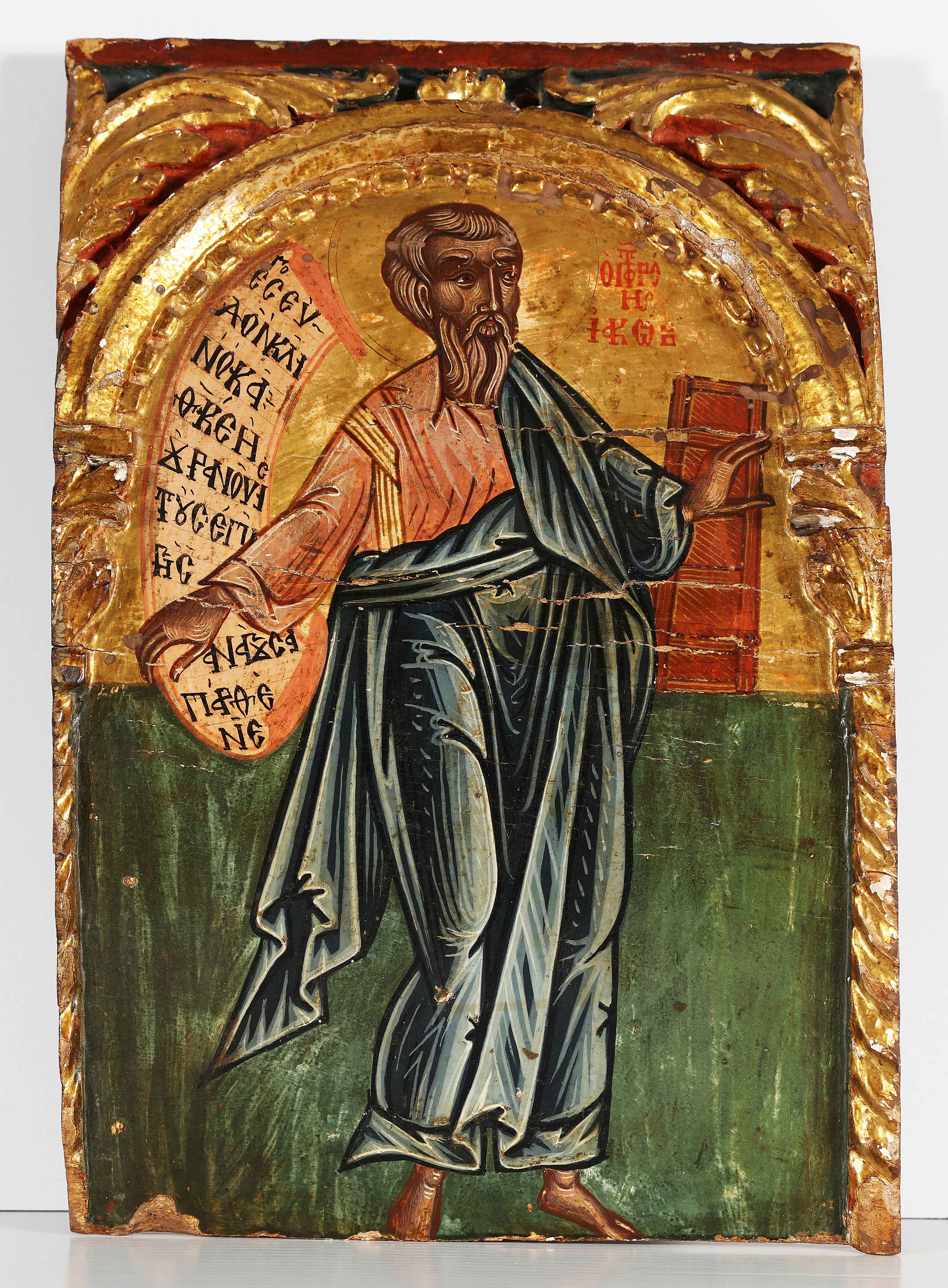Lot 38 | MAESTRO VENETO CRETESE DEL XVI SECOLO Santo evangelista. Tempera su tavola....