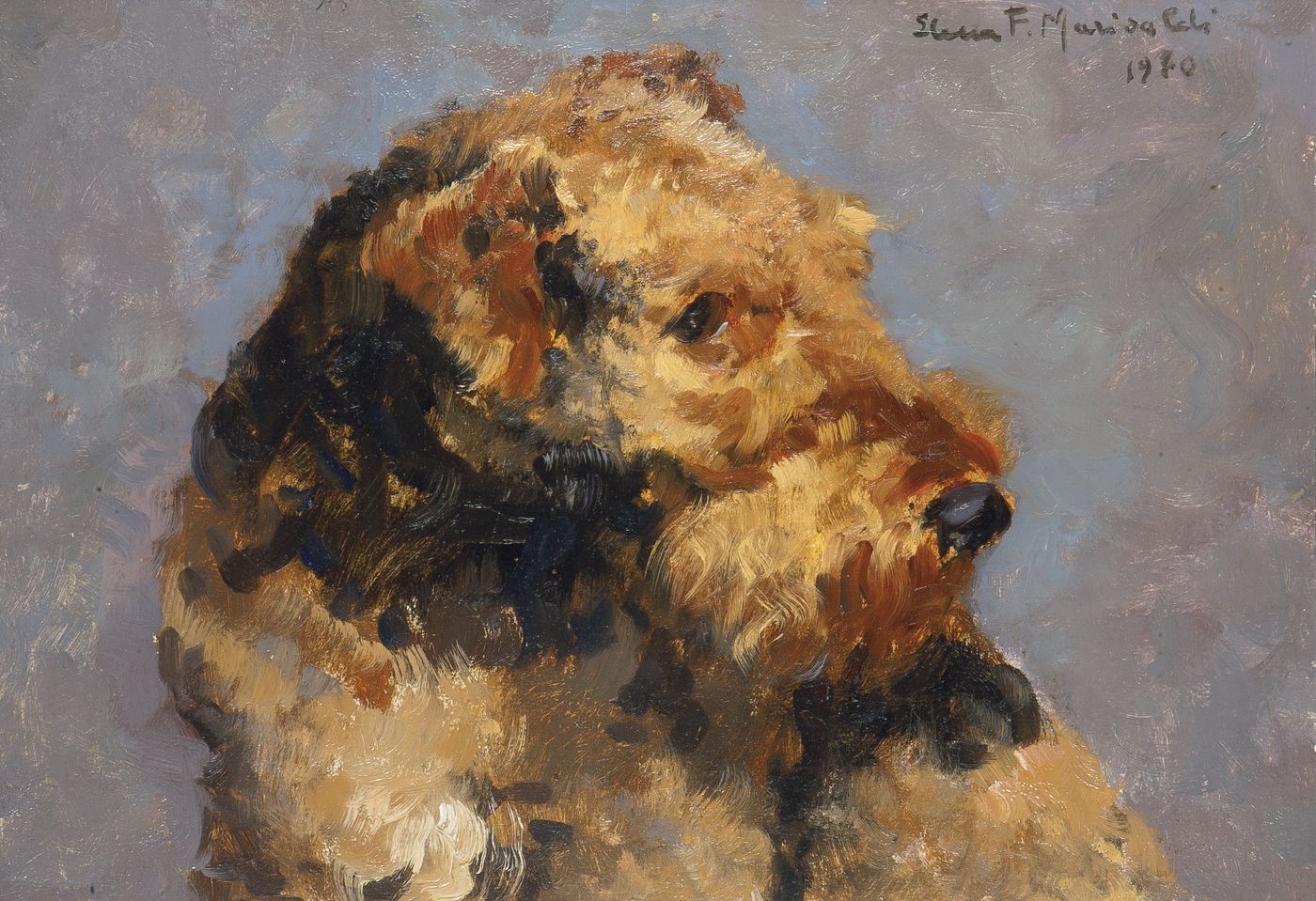 MARISALDI FALCO ELENA (Santo Stefano Belbo (CN) 1901 - 1986 Torino) - "Cane" 1970, 33x48 olio su cartone. Opera firmata e datata in alto a destra