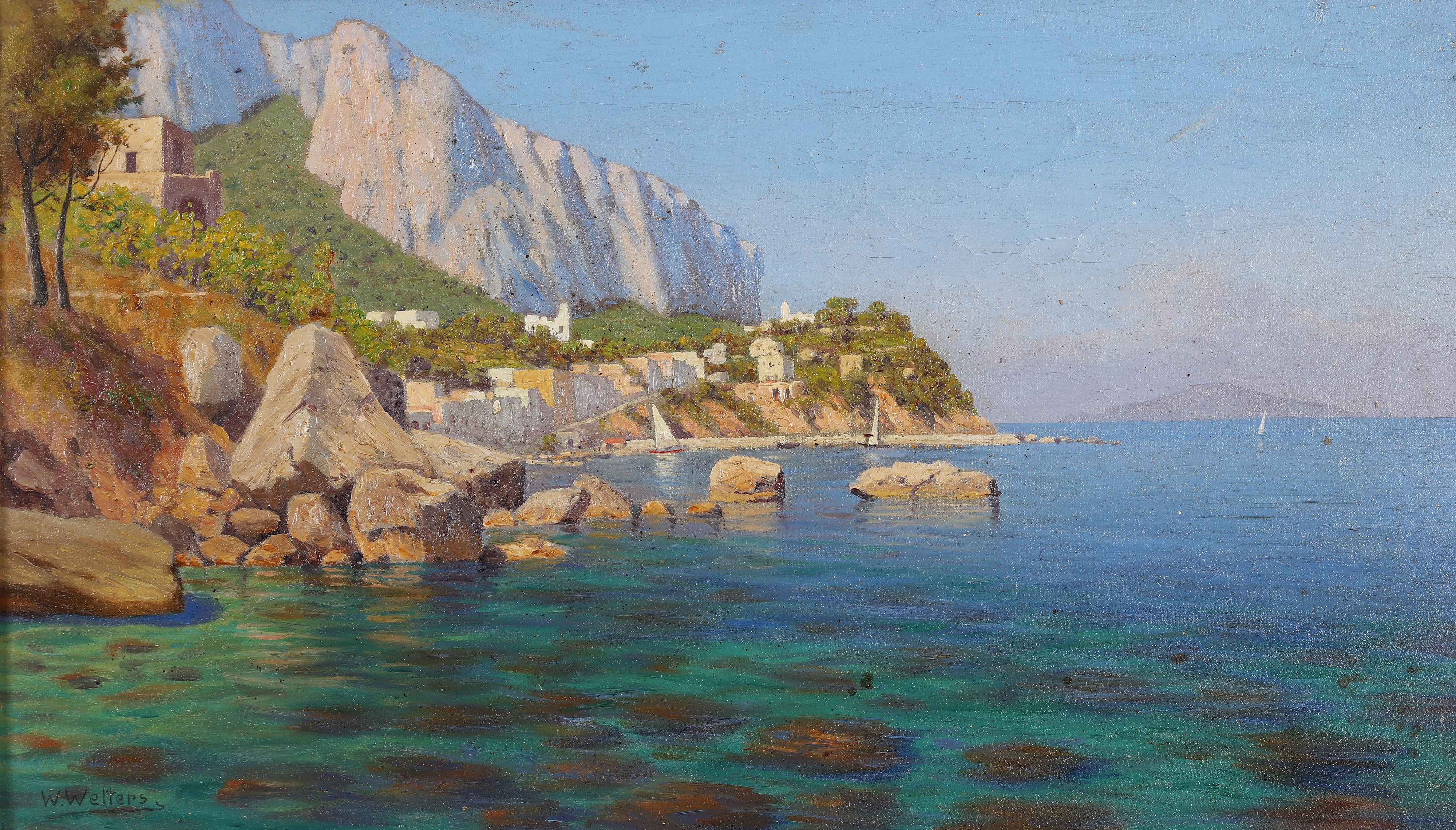 WELTERS WILLEM (1881 - 1972) Mare a Capri. Olio su tela. Cm 50,00 x 30,00. Firma in basso a sinistra. . Cornice presente