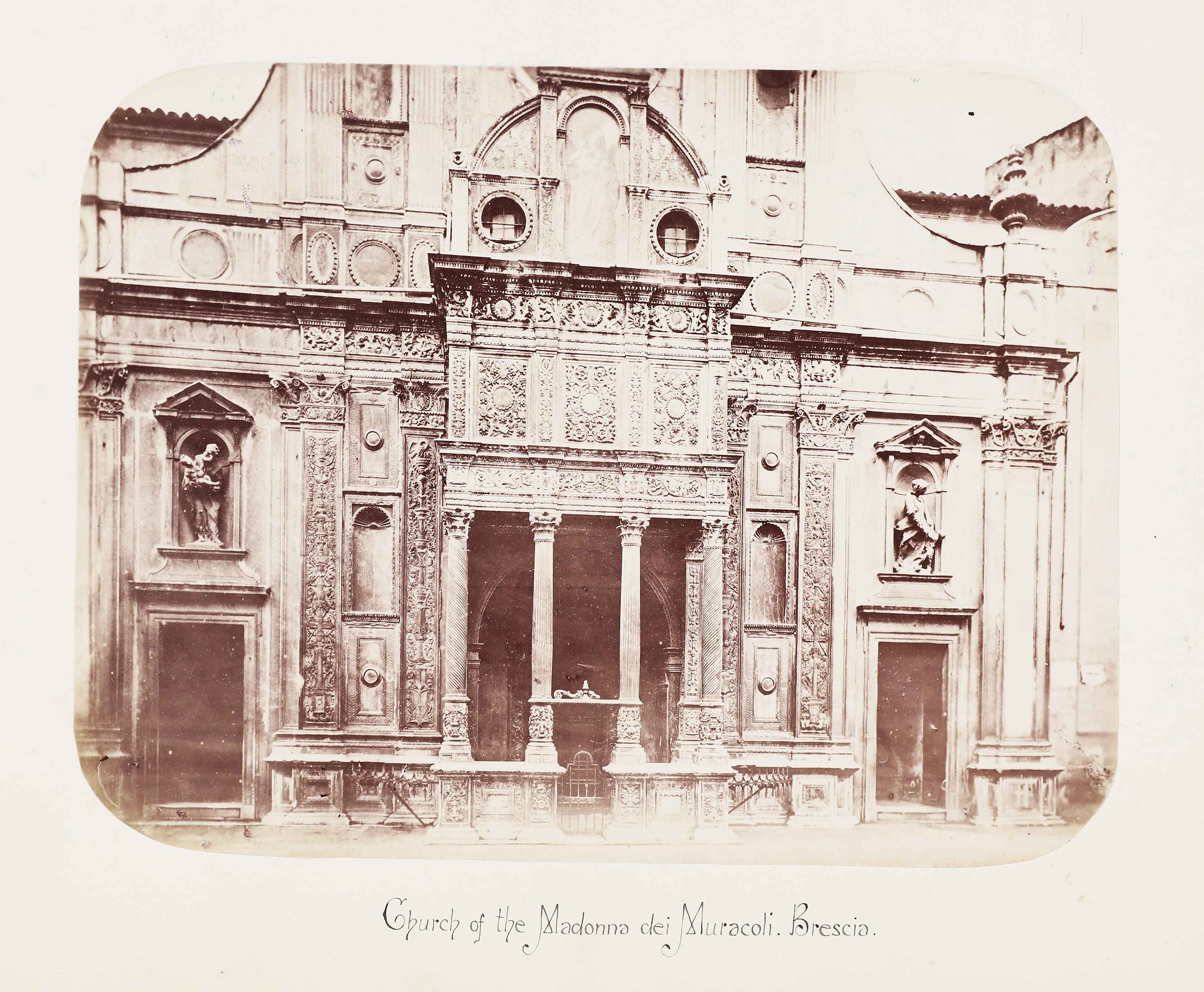 ROSSETTI GIACOMO (1807 - 1882) Attrib. Brescia, Chiesa della Madonna dei Miracoli. Stampa all'albumina. Cm 19,50 x 15,00. Con angoli stondati montata su cartoncino (19,2x23 cm). Titolo manoscritto in ingelse sul fronte. 1870 circa.