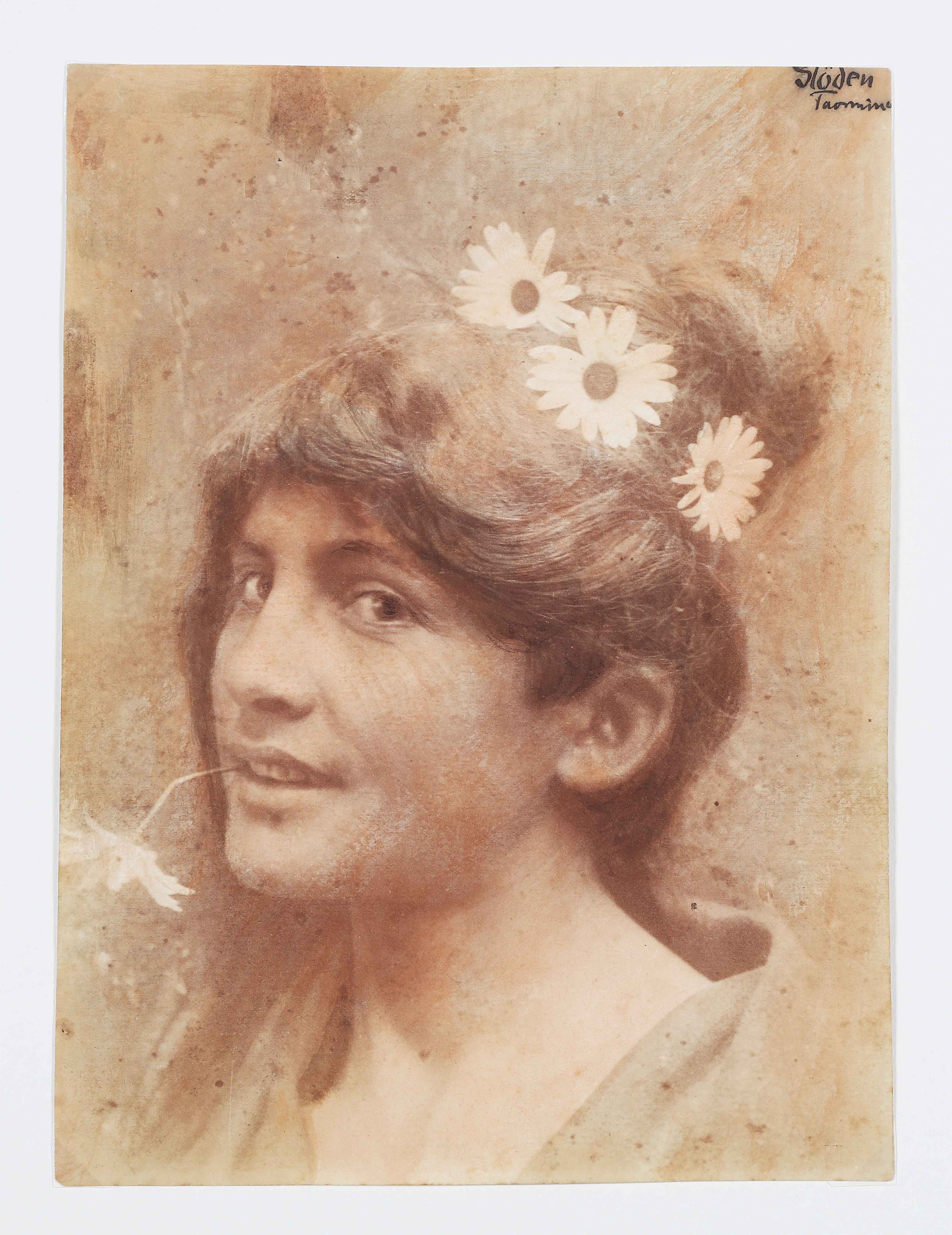 VON GLOEDEN WILHELM (1856 - 1931) Ritratto con corona di margherite. Carta...