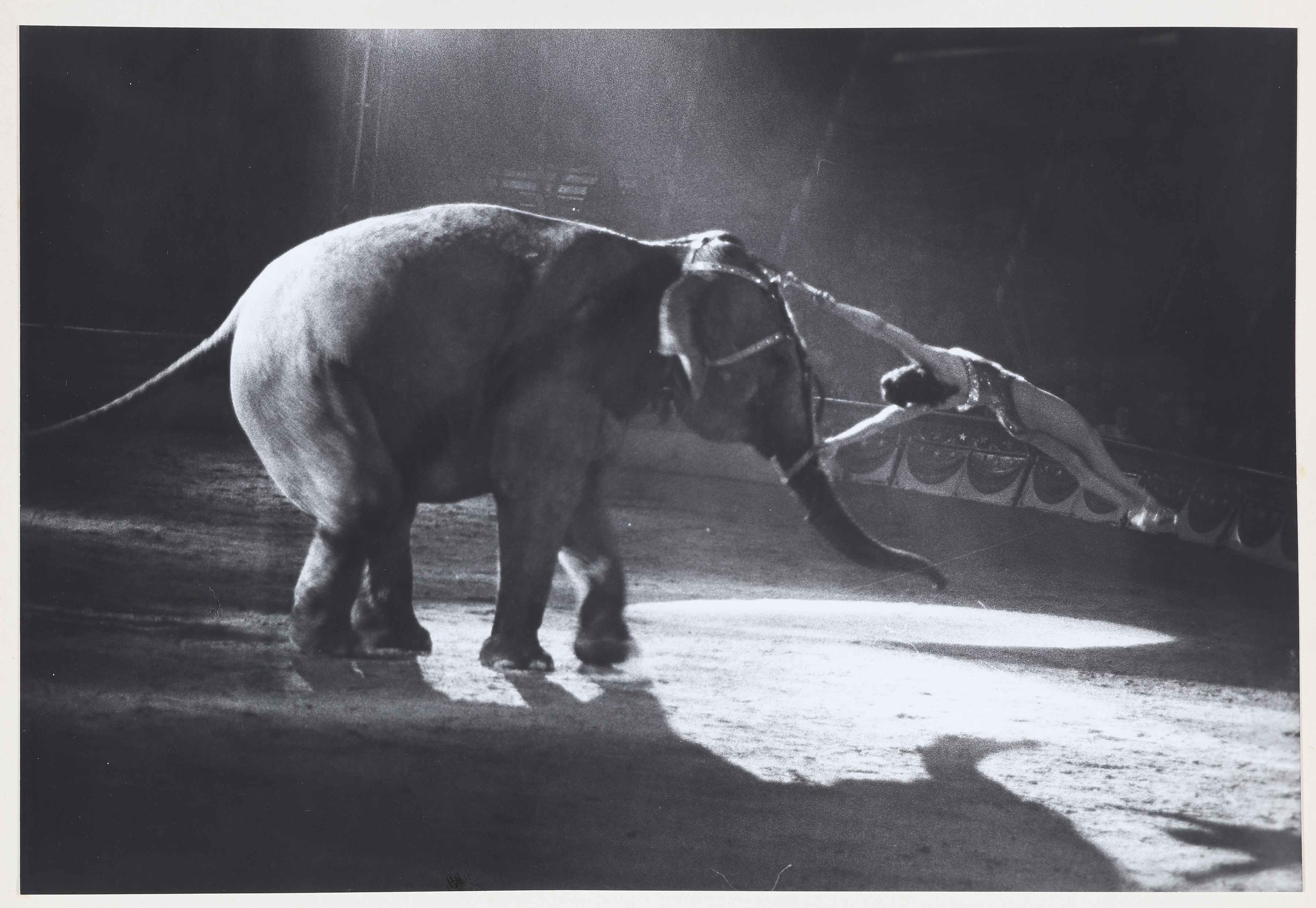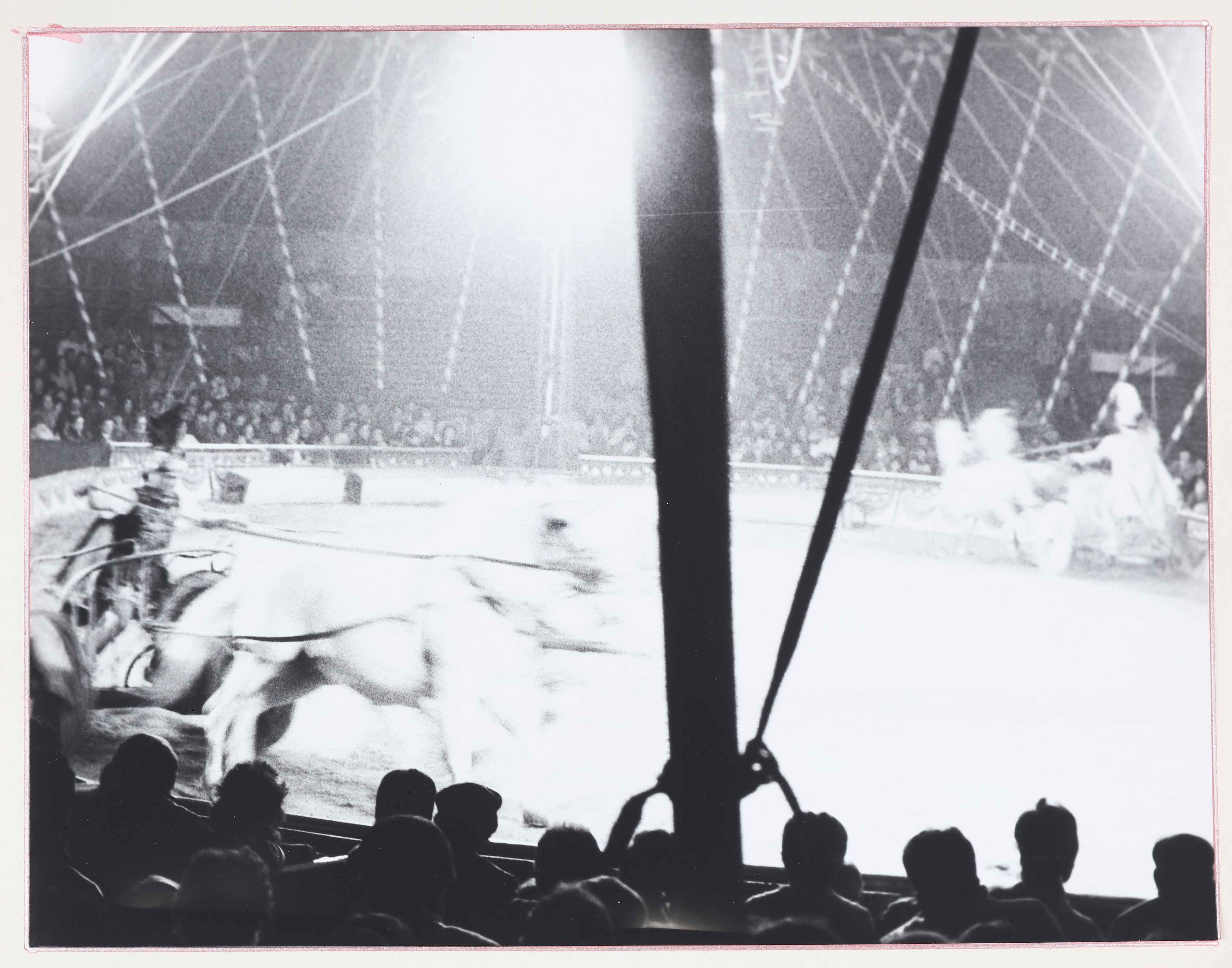 PINNA FRANCO (1925 - 1978) Il circo americano. Album. 1970. Stampa alla gelatina d'argento. Cm 28,70 x 22,50. 27 stampe montate in album in 4°, mezzatela nera con titolo manoscritto sul dorso. Foglio applicato con timbro con credito dell'artista, titolo Portfolio n.48 - Il Circo dattiloscritto e varie firme a penna.