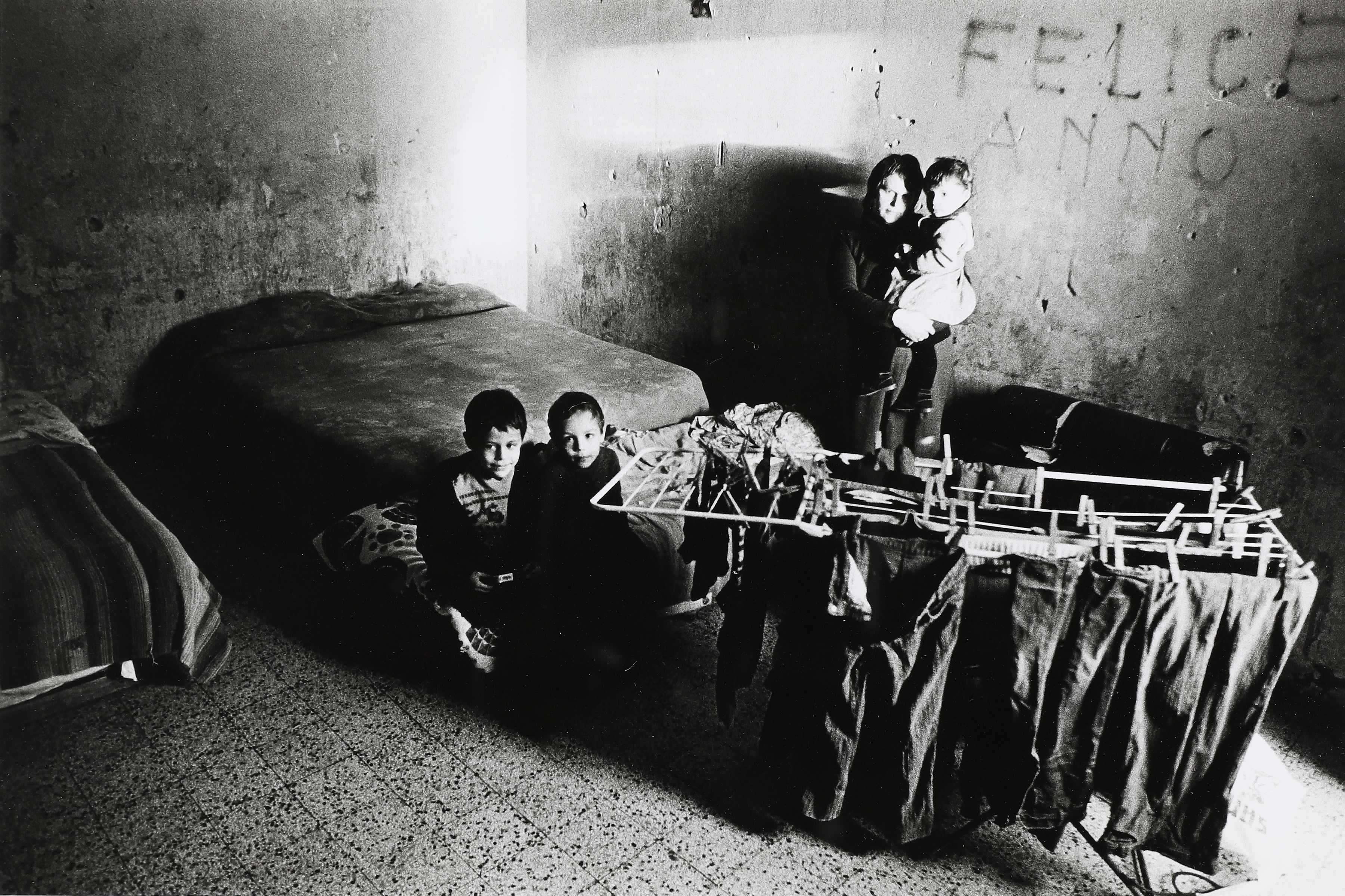 JODICE MIMMO (n. 1934) Senzatetto alloggiati nell'ex Hotel Tricarico a Bagnoli. 1980. Stampa alla gelatina d'argento. Cm 24,00 x 17,70. Vintage. Al verso timbro con credito dell'artista.