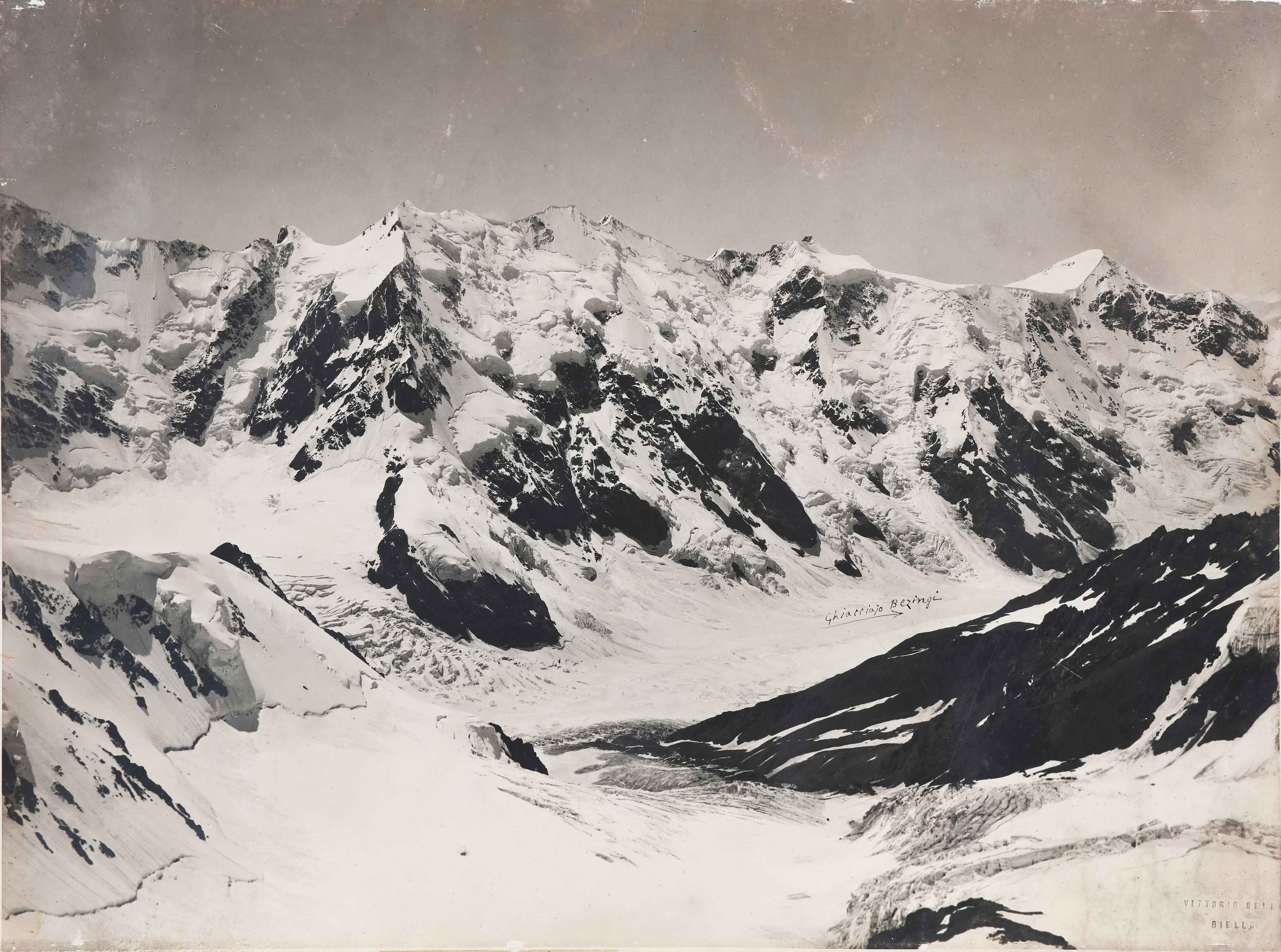 SELLA VITTORIO (1859 - 1943) Caucaso, ghiacciaio Bezingi. Stampa alla gelatina d'argento. Cm 28,00 x 37,70. Timbro a secco con credito dell'artista in basso a destra. 1889 - 1896 circa.