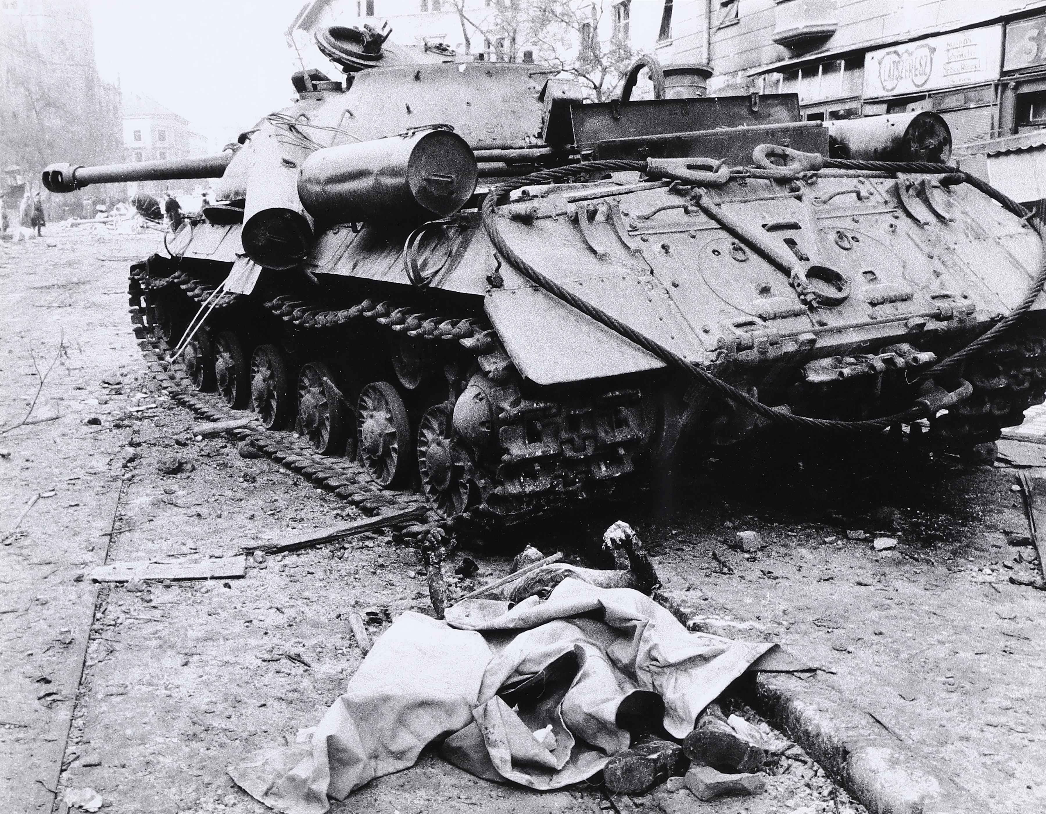 DE BIASI MARIO (1923 - 2013) Budapest 56. 1956. Stampa alla gelatina d'argento. Cm 30,00 x 22,00. Vintage. Firma titolo e anno al verso.