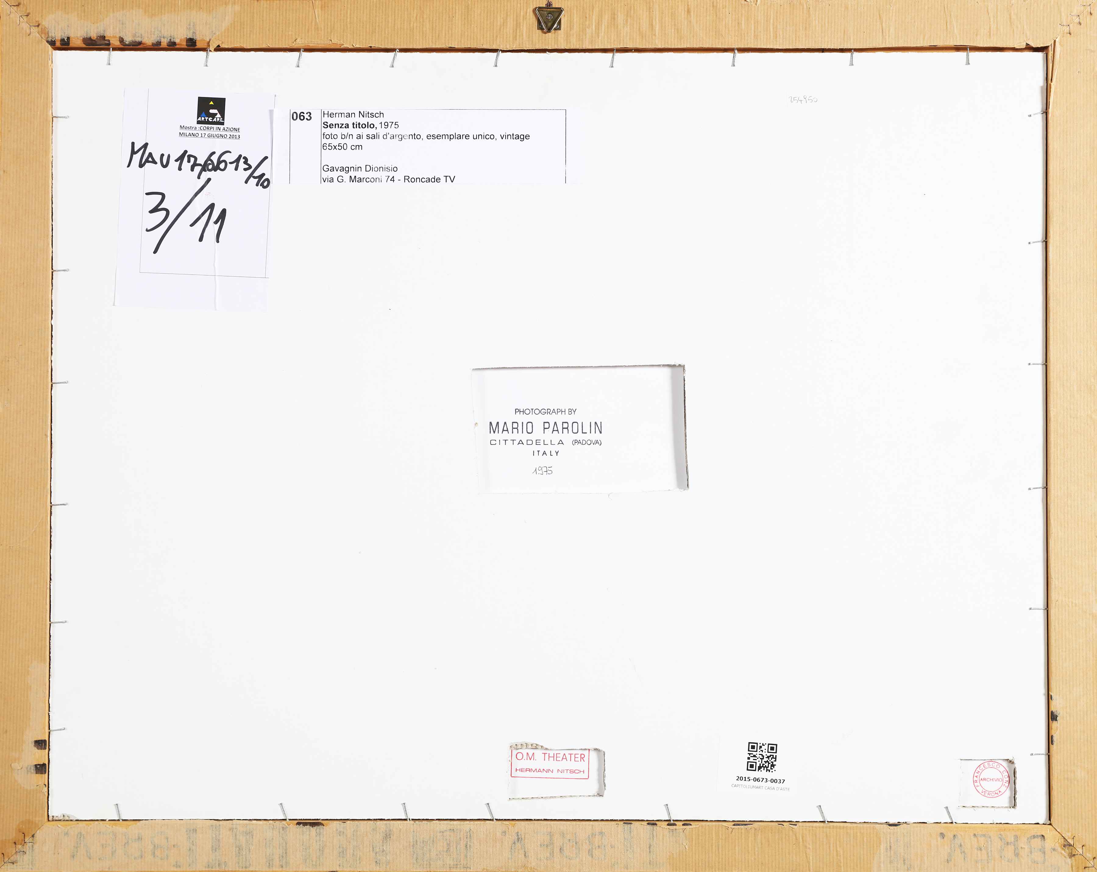 NITSCH HERMANN (n. 1938) Senza titolo (Performance). 1975. Stampa alla gelatina d'argento. Cm 65,00 x 50,00. Vintage. Timbro con credito del fotografo Mario Parolin.