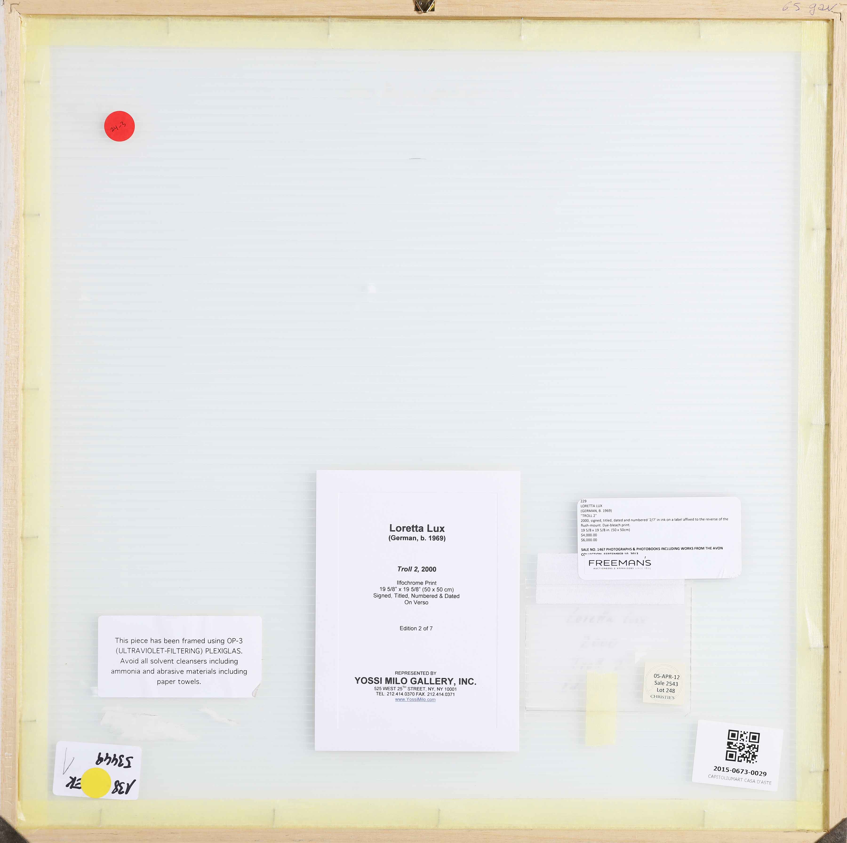 LUX LORETTA (n. 1969) Troll 2. 2000. Stampa dye bleach su dibond. Cm 38,00 x 38,00. Esemplare 2/7. Montata su dibond ( 50 x50 cm). Firma ed etichetta con credito dell'artista. Al verso titolo e numero di edizione.