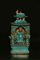 Arte Cinese Modello di pagoda in ceramica turchese con attendenti Cina, dinastia Ming, XVI secolo. . Cm 13,00 x 30,00. Modellino di edificio con eminenza assisa in posizione centrale e due attendenti ai lati. Il retro, alcune parti dell'edificio e dei corpi sono lasciate senza invetriatura.
