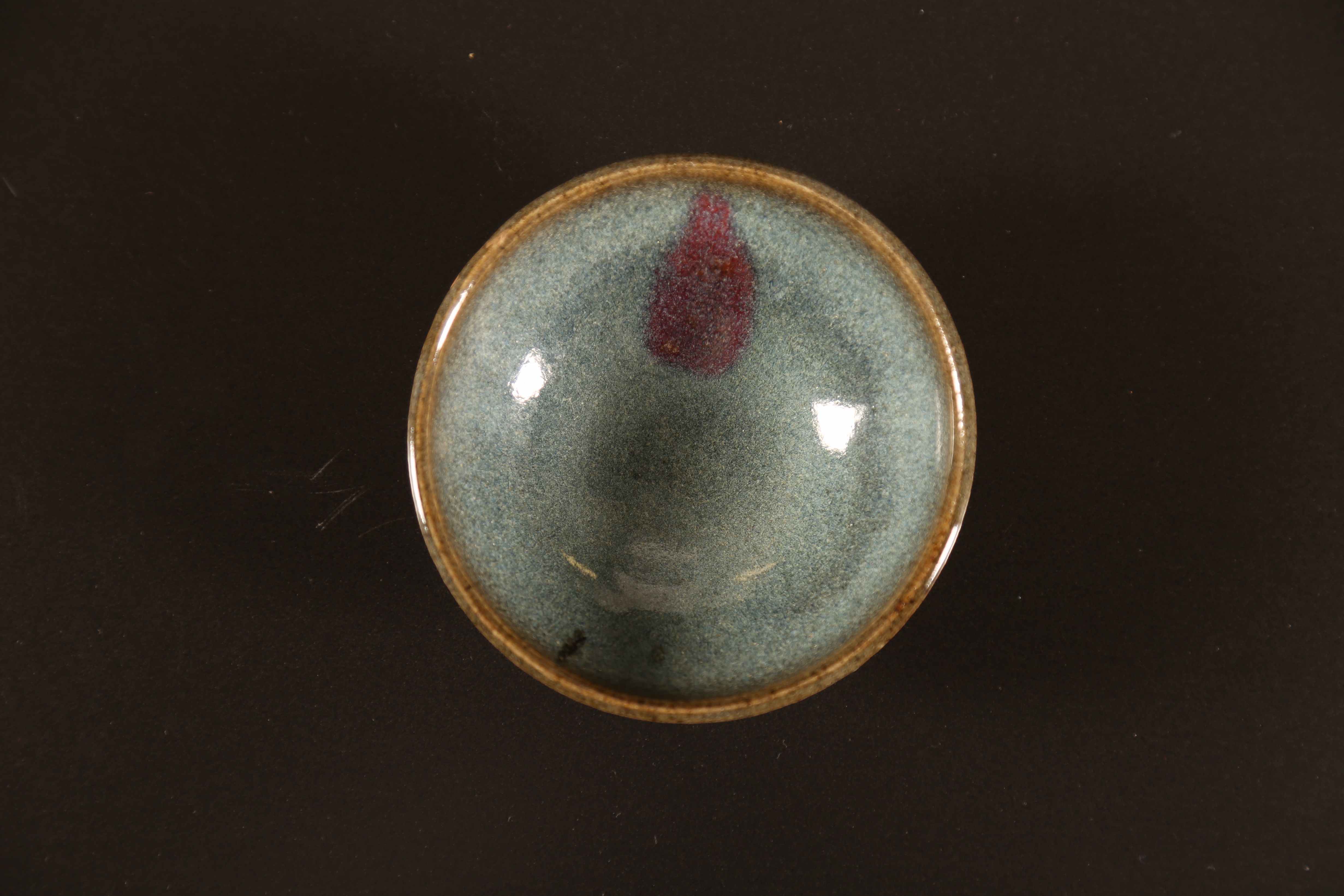 Arte Cinese Piccola ciotola Junyao Cina, dinastia Song, XII - XIII secolo. -. Cm 12,00 x 5,00. Ciotola in ceramica ricoperta di spessa vetrina blu e "macchiata" di rosso, una caratteristica della tipologia Junyao.