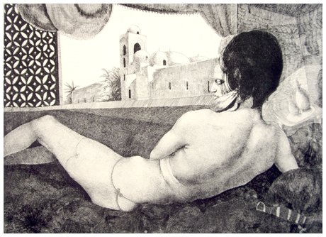 UGO ATTARDI 1923 – 2006 …era stata donata… 1972 Acquaforte es.50/100. Firma e data in b. a d. (35 x 50 foglio – 24,5 x 34 inc.) L’opera fa parte della cartella “La donna della cuba”, composta da 4 acqueforti impresse al torchio a mano dalla Stamperia Barrovecchio di Roma su carta Rosaspina delle Cartiere Miliani di Fabriano, per la novella sesta della quinta giornata del Decameron di Boccaccio, Sellerio Editore, Palermo, 1972.