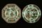 Arte Cinese Coppia di piatti in porcellana famiglia verde con personaggi...