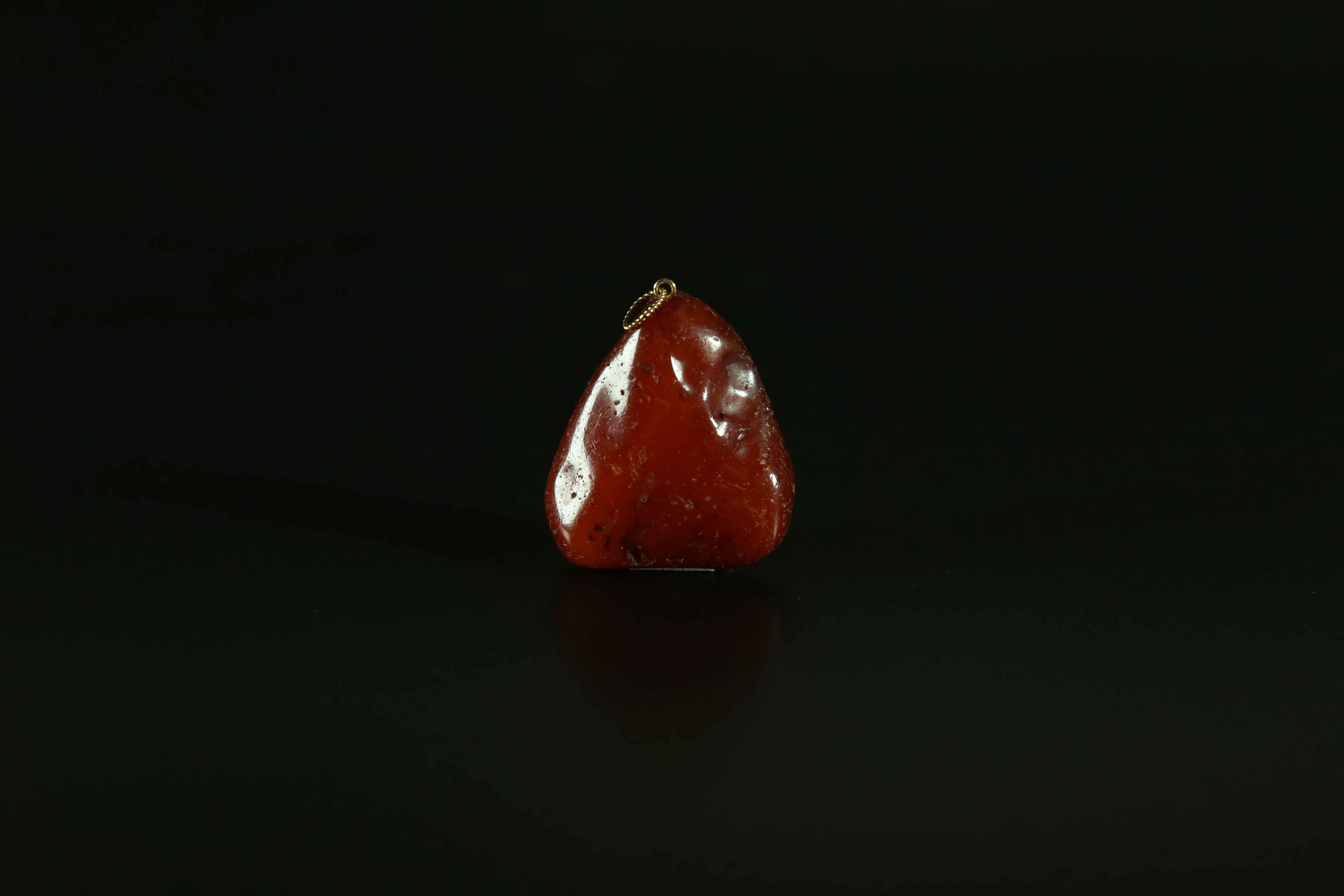 Arte Cinese Amber pebble mounted as a pendant with a gold loop