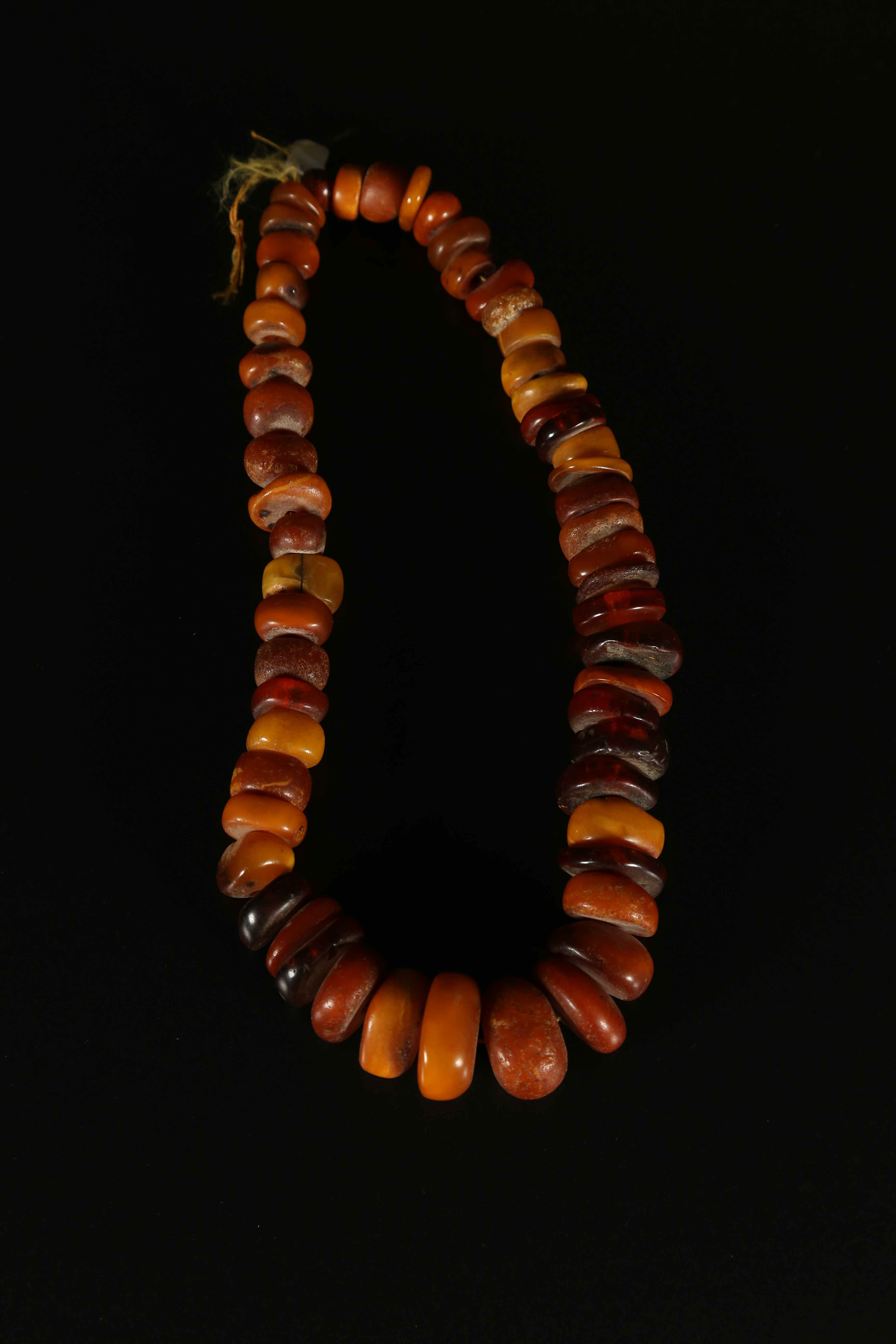 Arte Cinese Grande collana in ambra . -. Cm 26,50. Antica collana in ambra composta da 56 grani di forma irregolare.