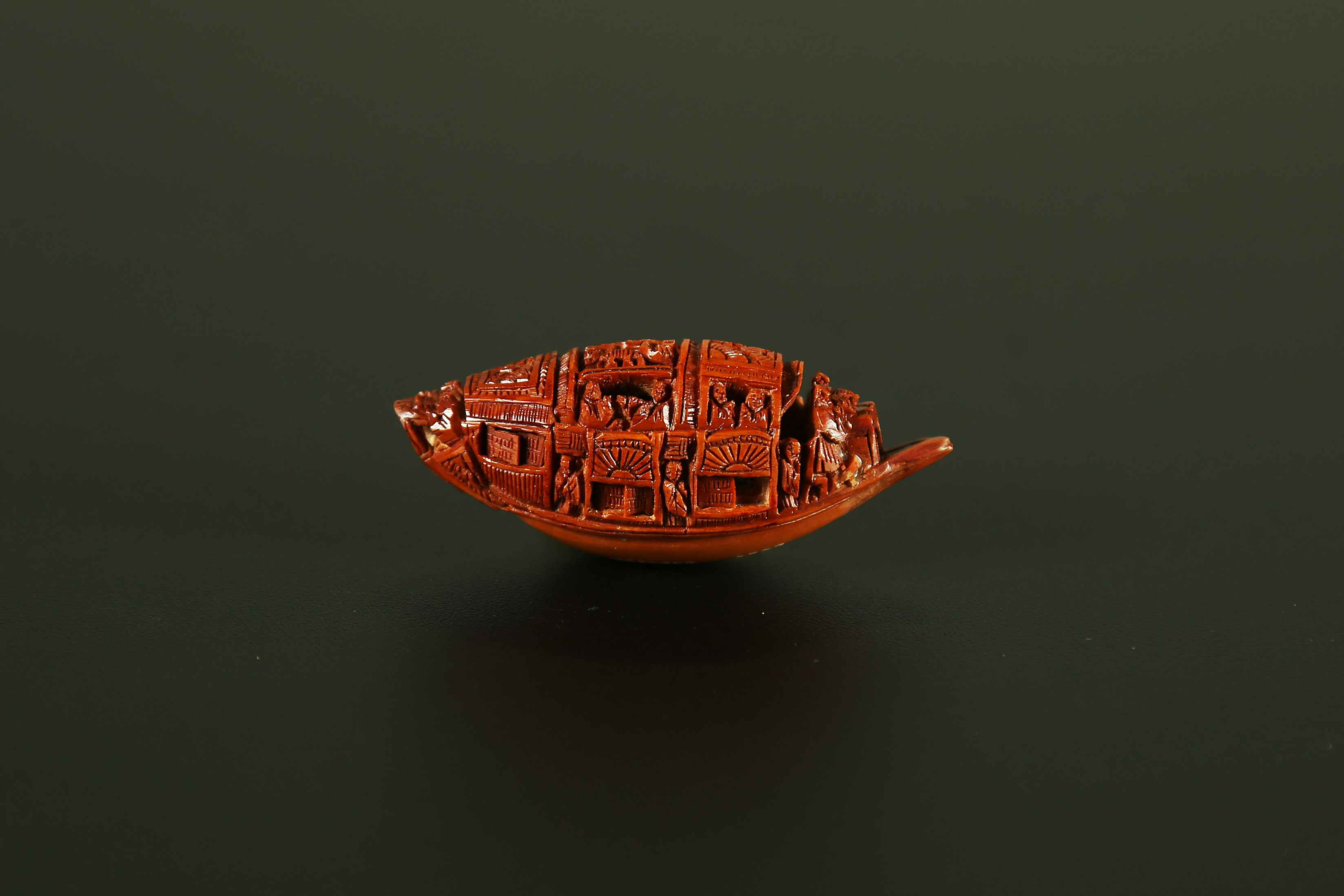 Arte Cinese Nut carved in the shape of a raft