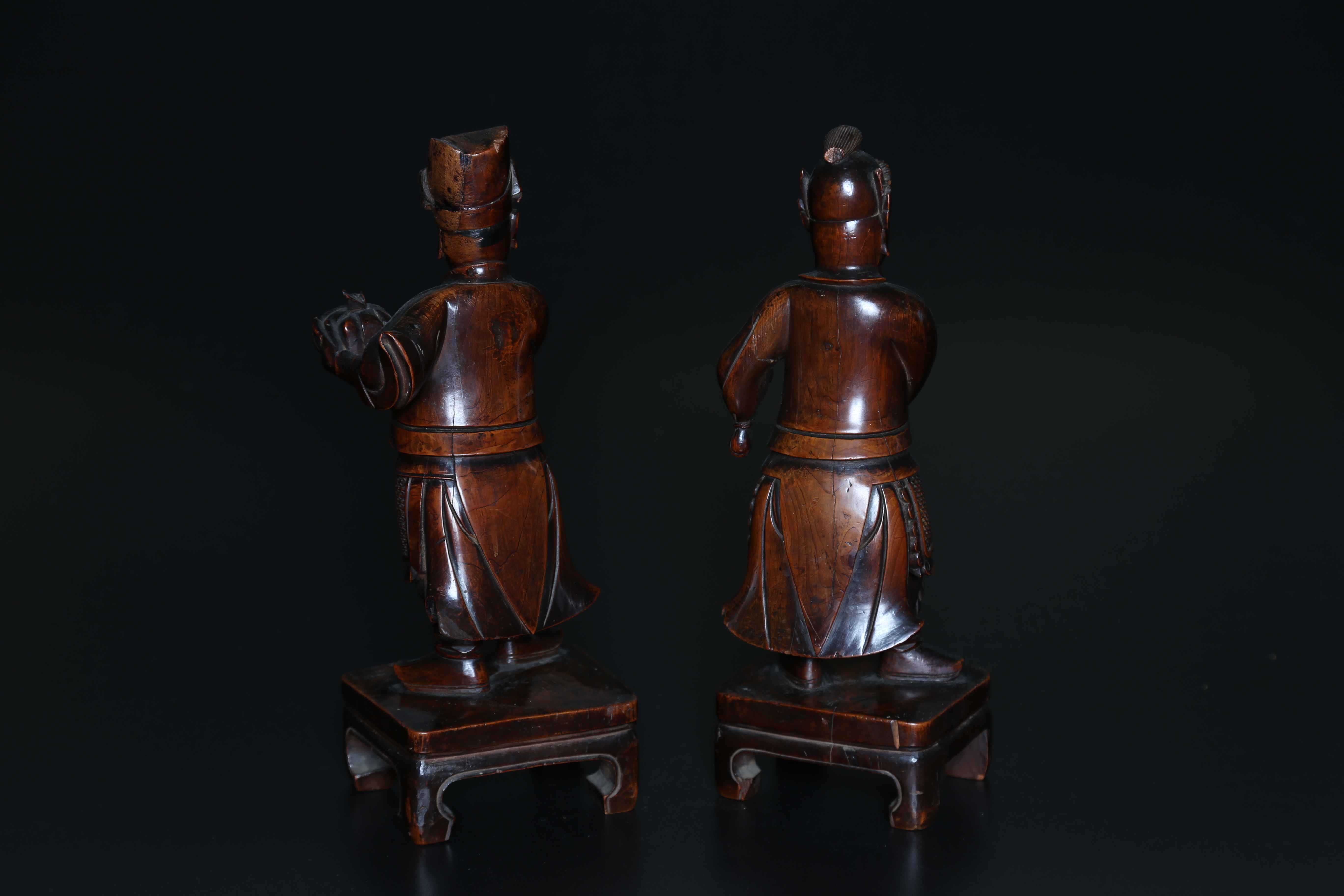 Arte Cinese Coppia di sculture in legno raffiguranti guerrieri Cina, dinastia...