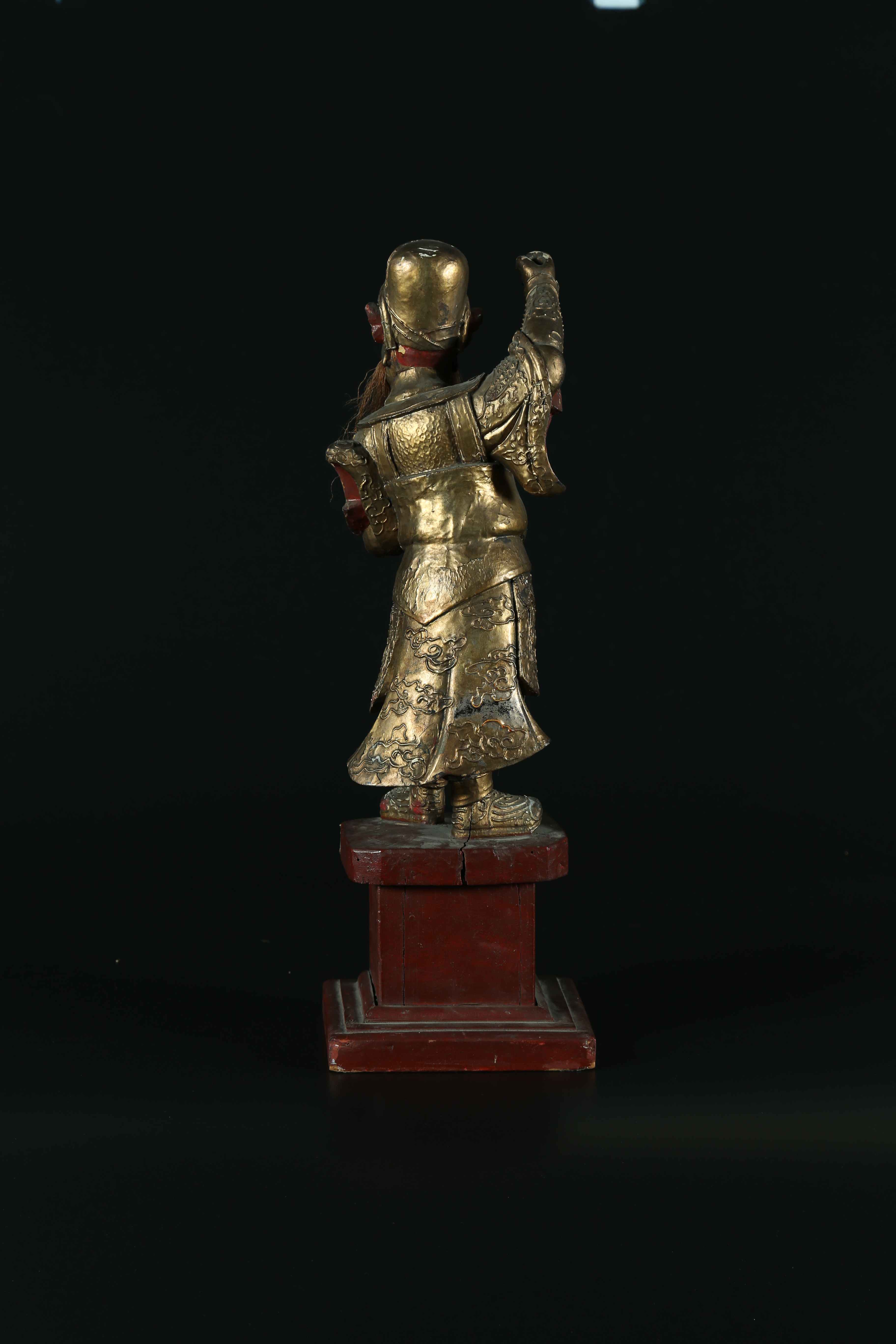 Arte Cinese A gilt lacquered sculpture depicting a Lokapala