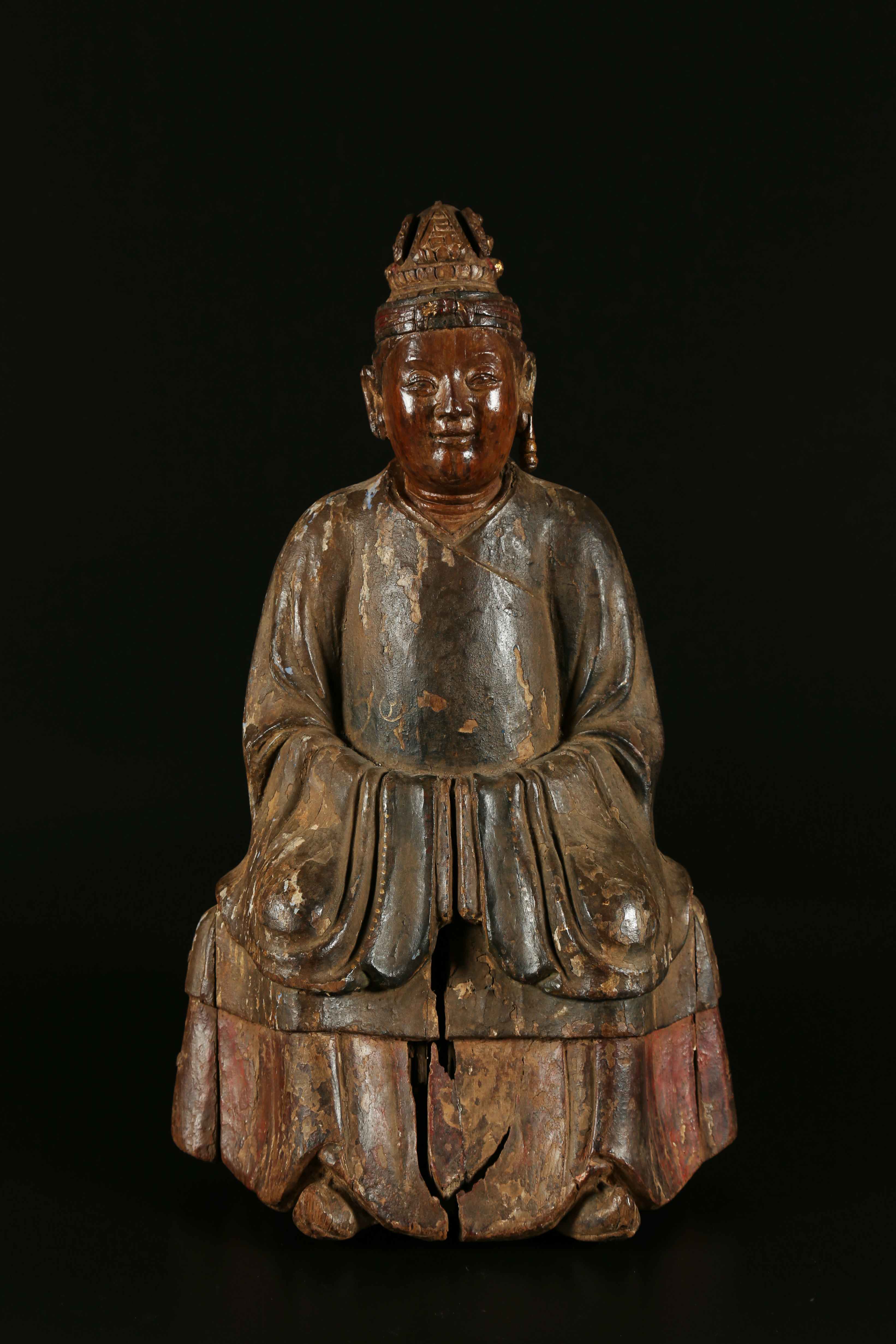 Arte Cinese A wooden sculpture portraying an ancestor