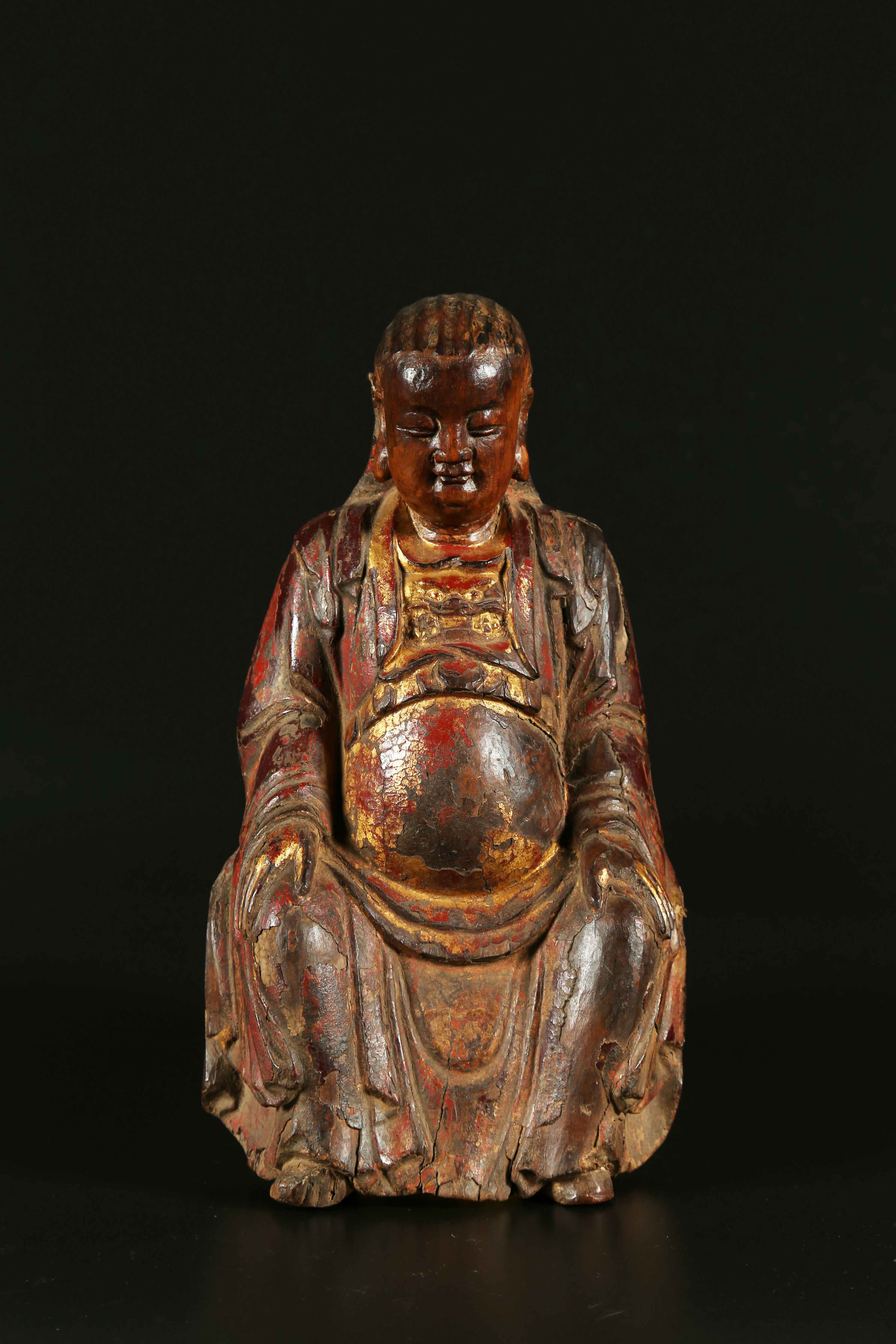 Cina, dinastia Ming, XVI secolo. -. Cm 18,70 x 34,00. Presenta tracce di policromia e oro ed una superficie patinata particolarmente visibile sul volto.