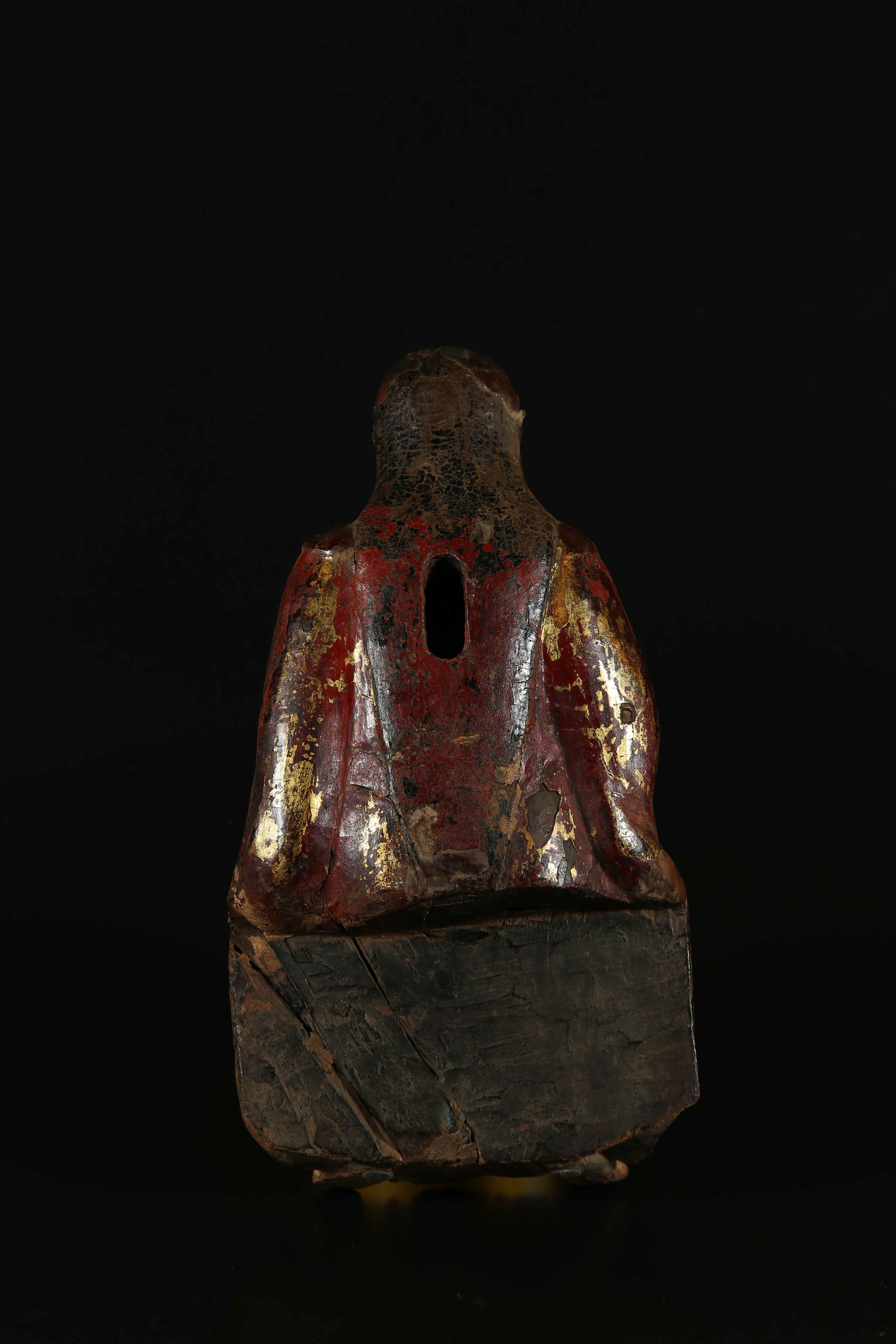 Arte Cinese A wooden sculpture depicting an emperor