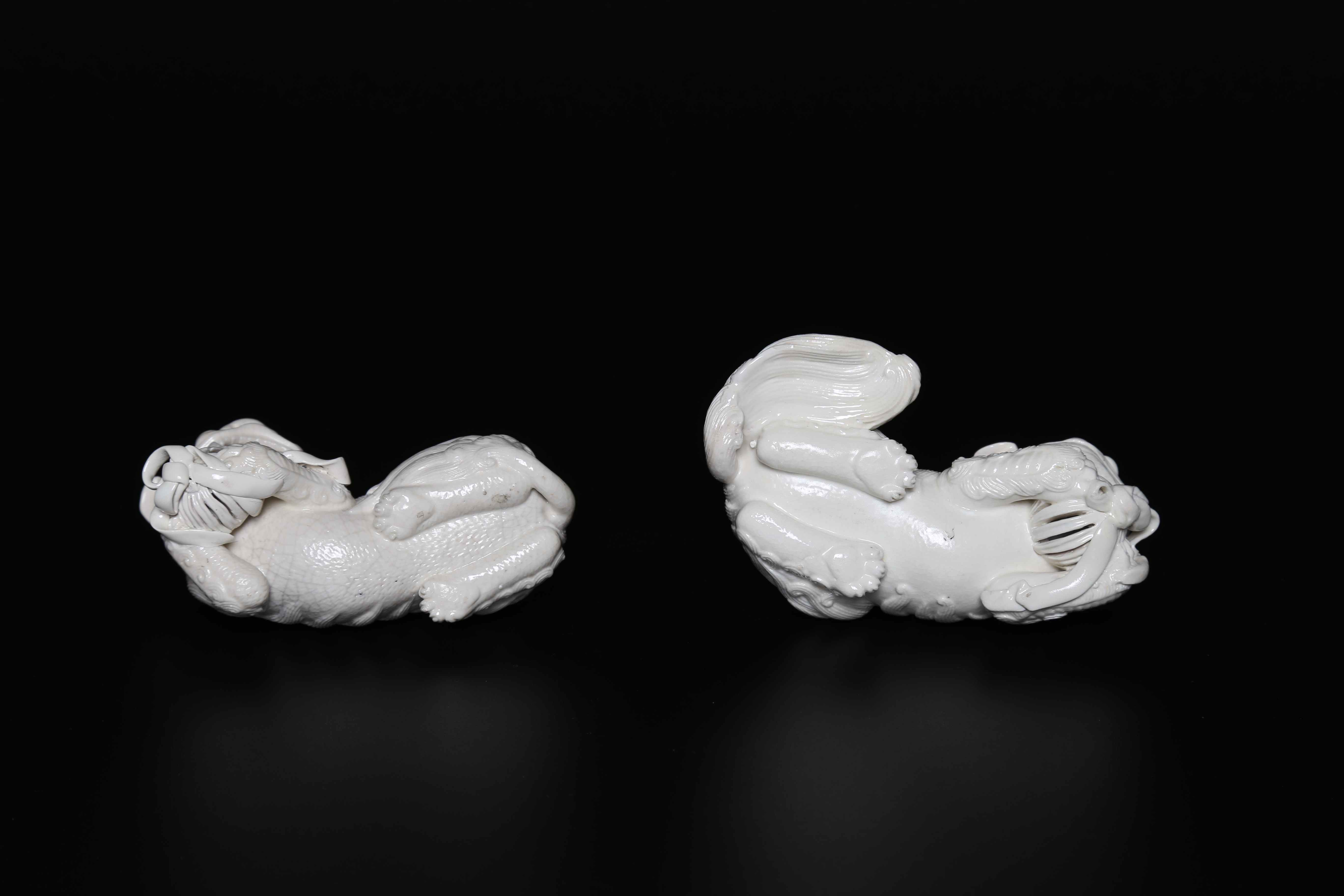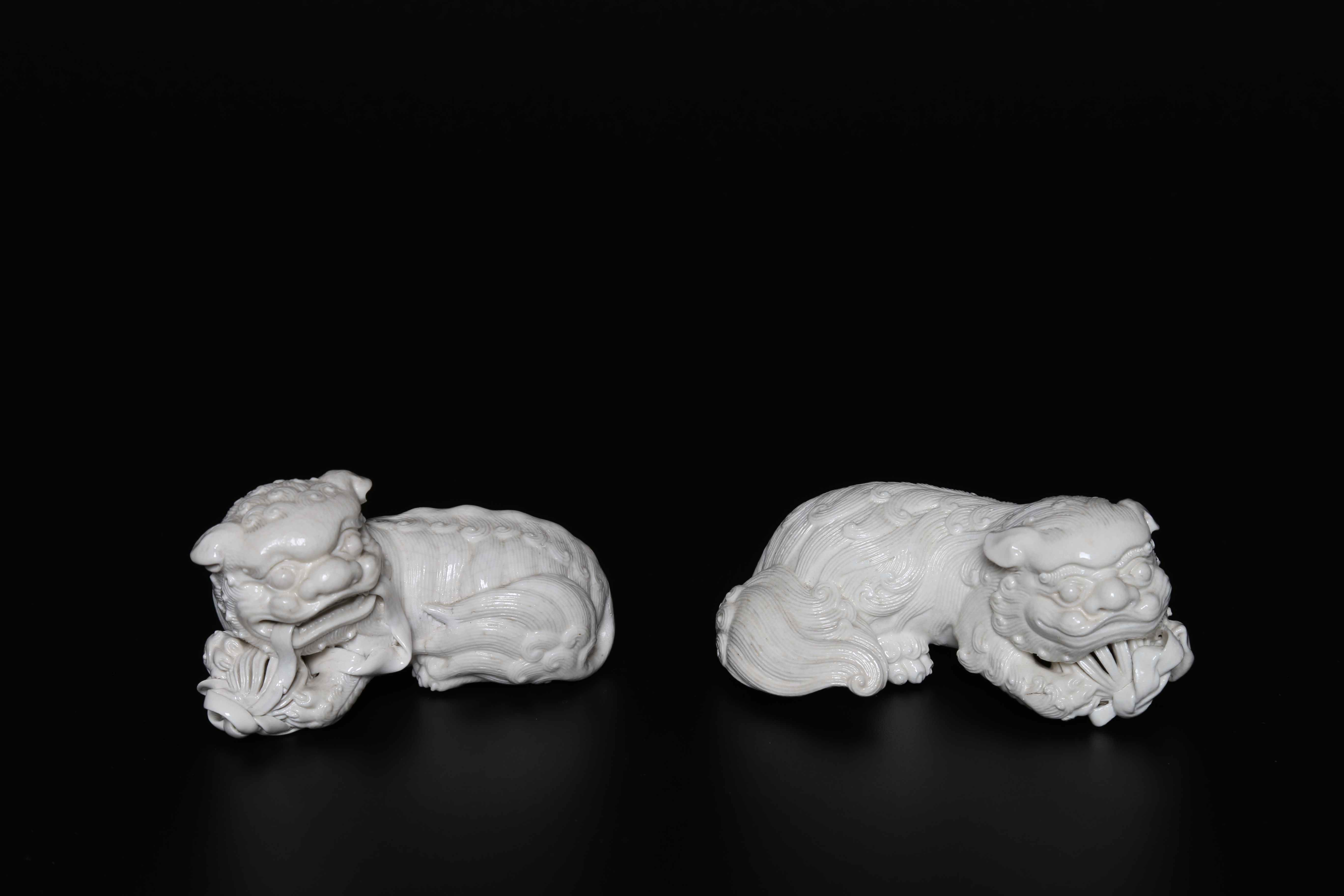 Arte Cinese Coppia di leoni in porcellana a pasta tenera