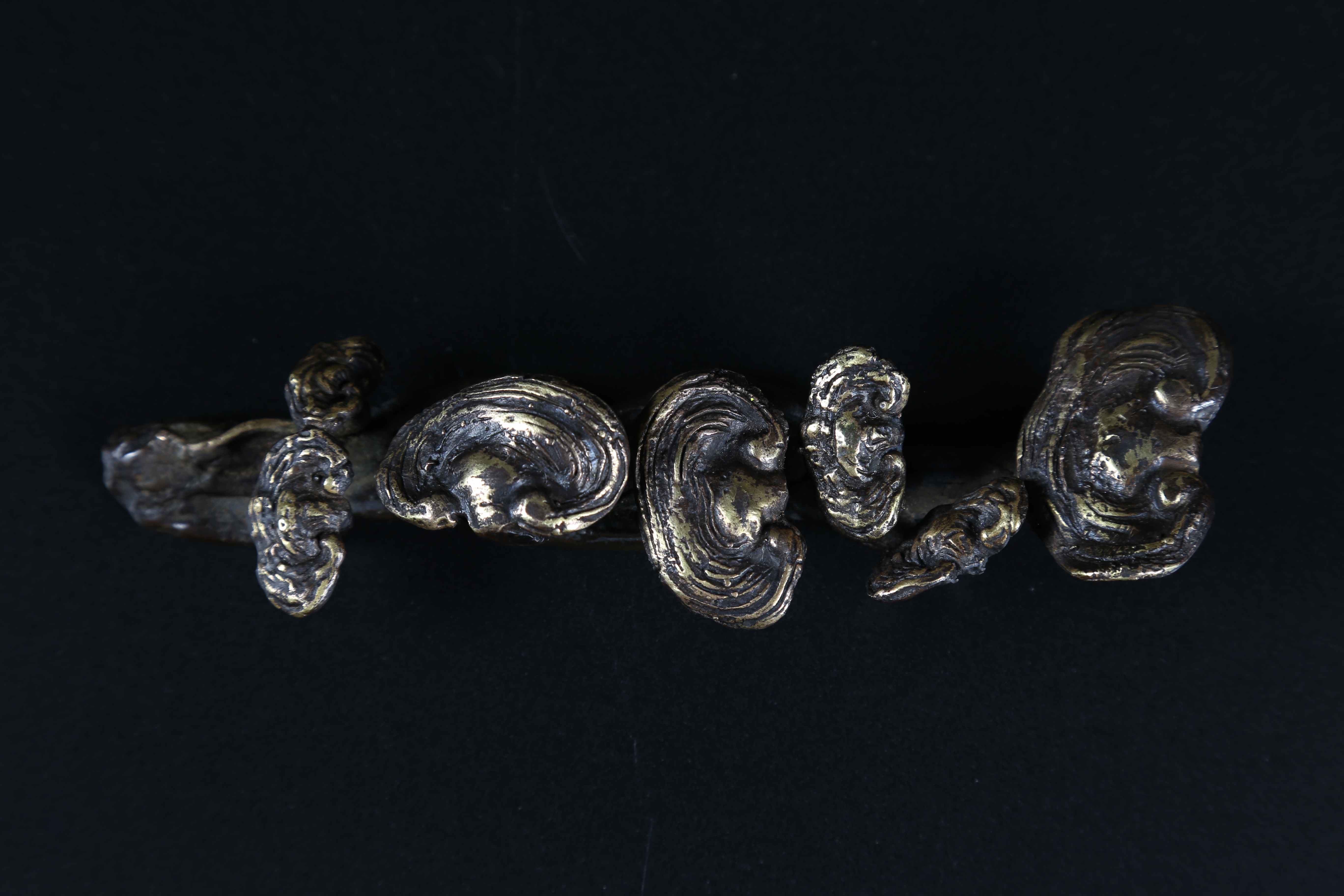 Arte Cinese Porta pennelli in bronzo dorato Cina, XVIII - XIX secolo. . Cm 14,30. Fusione caratterizzata da motivo di nuvole di varia dimensione che fungono da separatori per i pennelli.