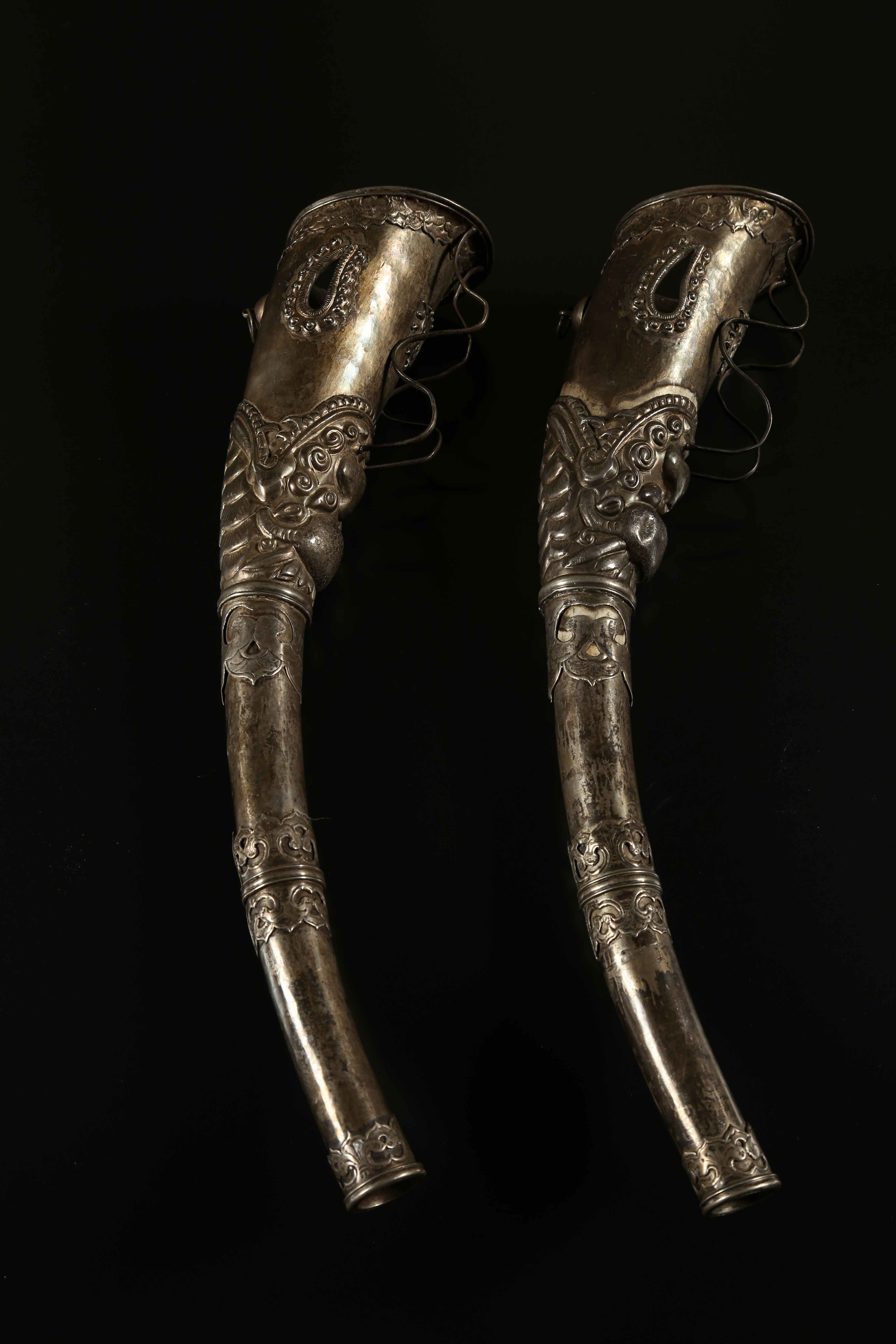 Arte Himalayana Coppia di trombe in argento Tibet, XIX secolo . -. Cm 10,00 x...