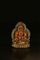 Arte Himalayana A gilt bronze embossed statue depicting Amitayus with coral and turquoise Nepal, 19th century . . Cm 7,00 x 10,00 x 1,00. A fine statue depicting Amitayus made out of coral, seated on a single lotus base in padmasana position. The figure holds the kalasa and is surrounded by a halo of flames with incrusted turquoise.