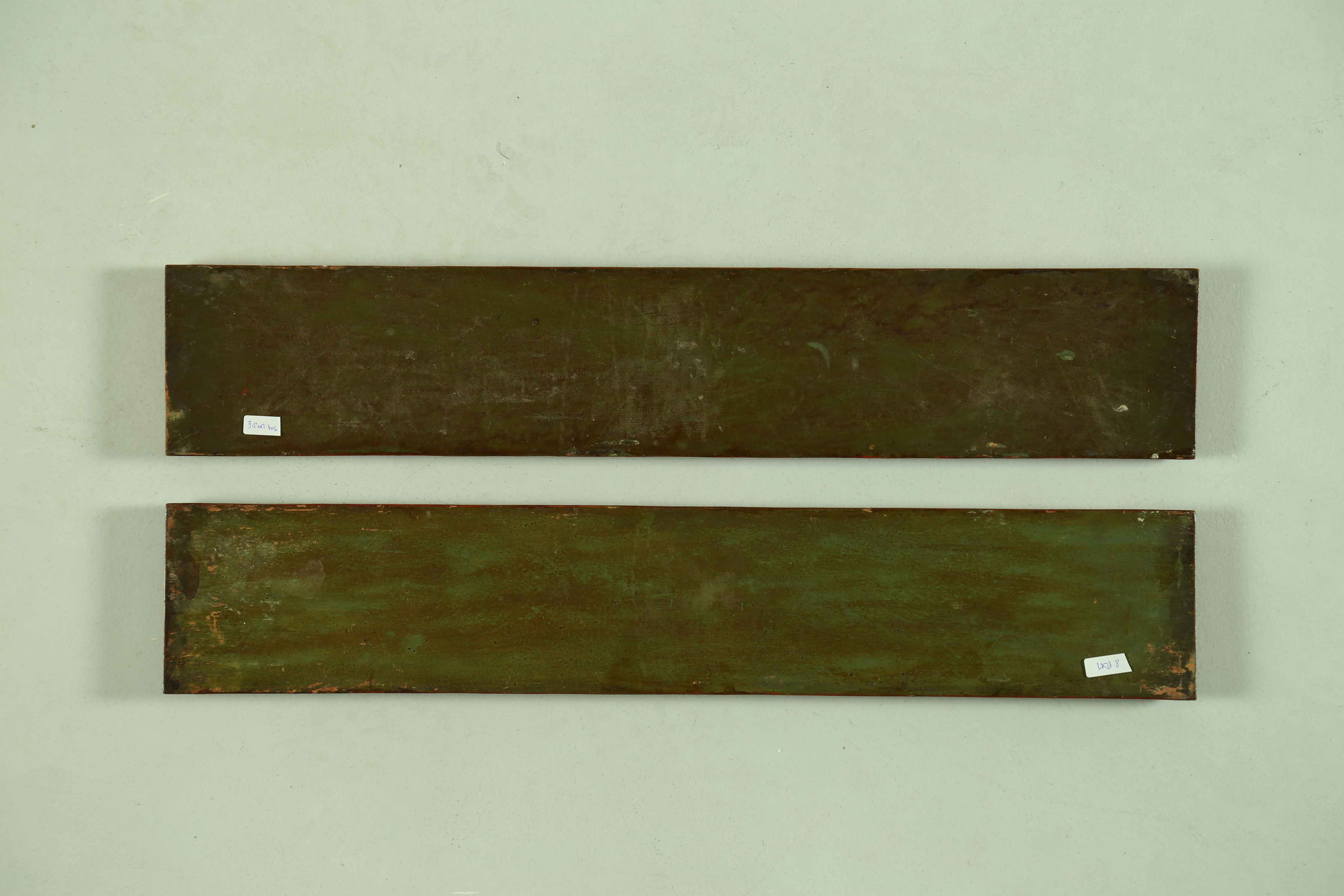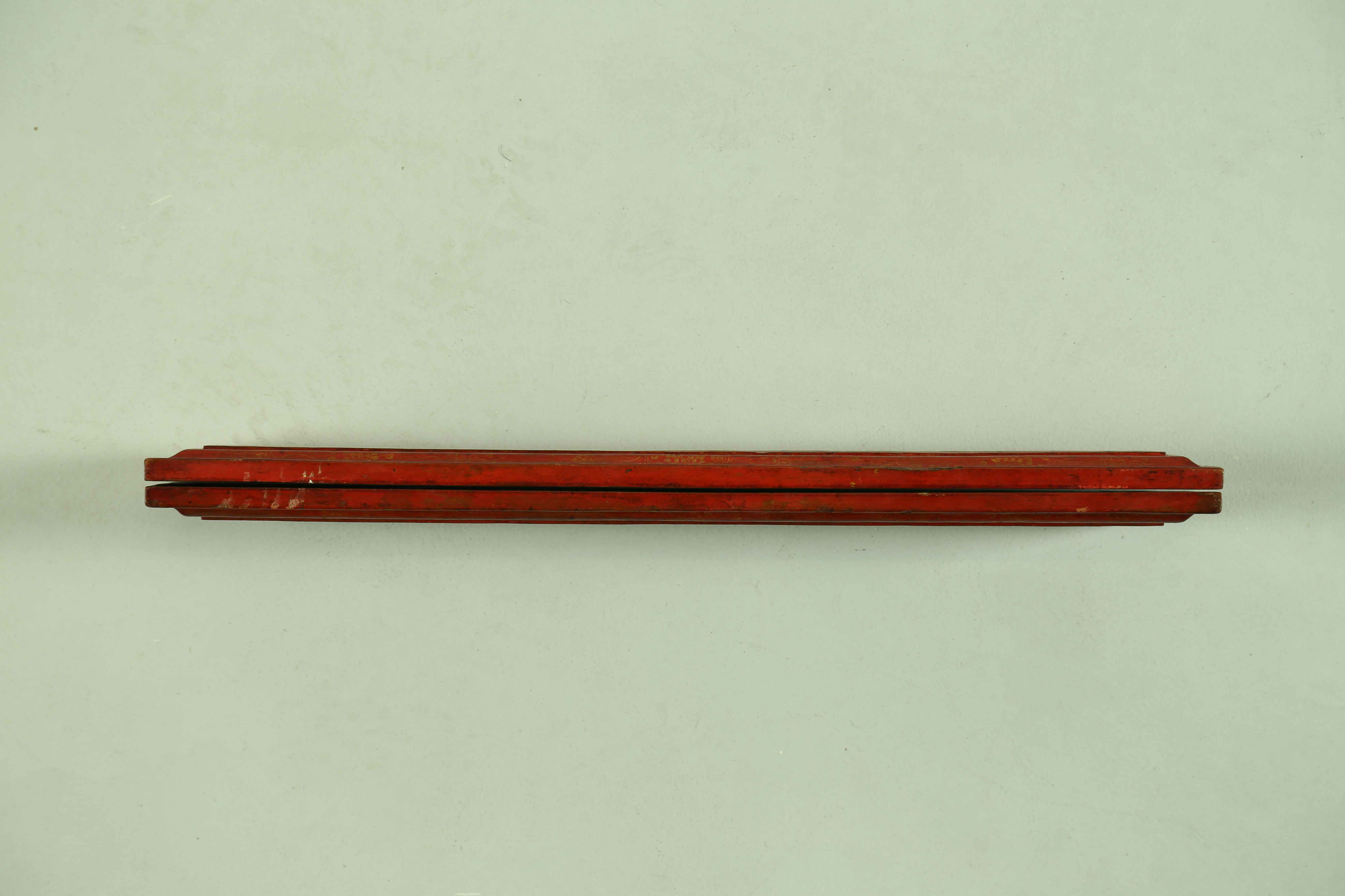 Tibet, XVIII - XIX secolo . -. Cm 11,20 x 60,90. Doppia copertina di libro laccata di rosso con delicate ed intricate decorazioni a foglie e loti.