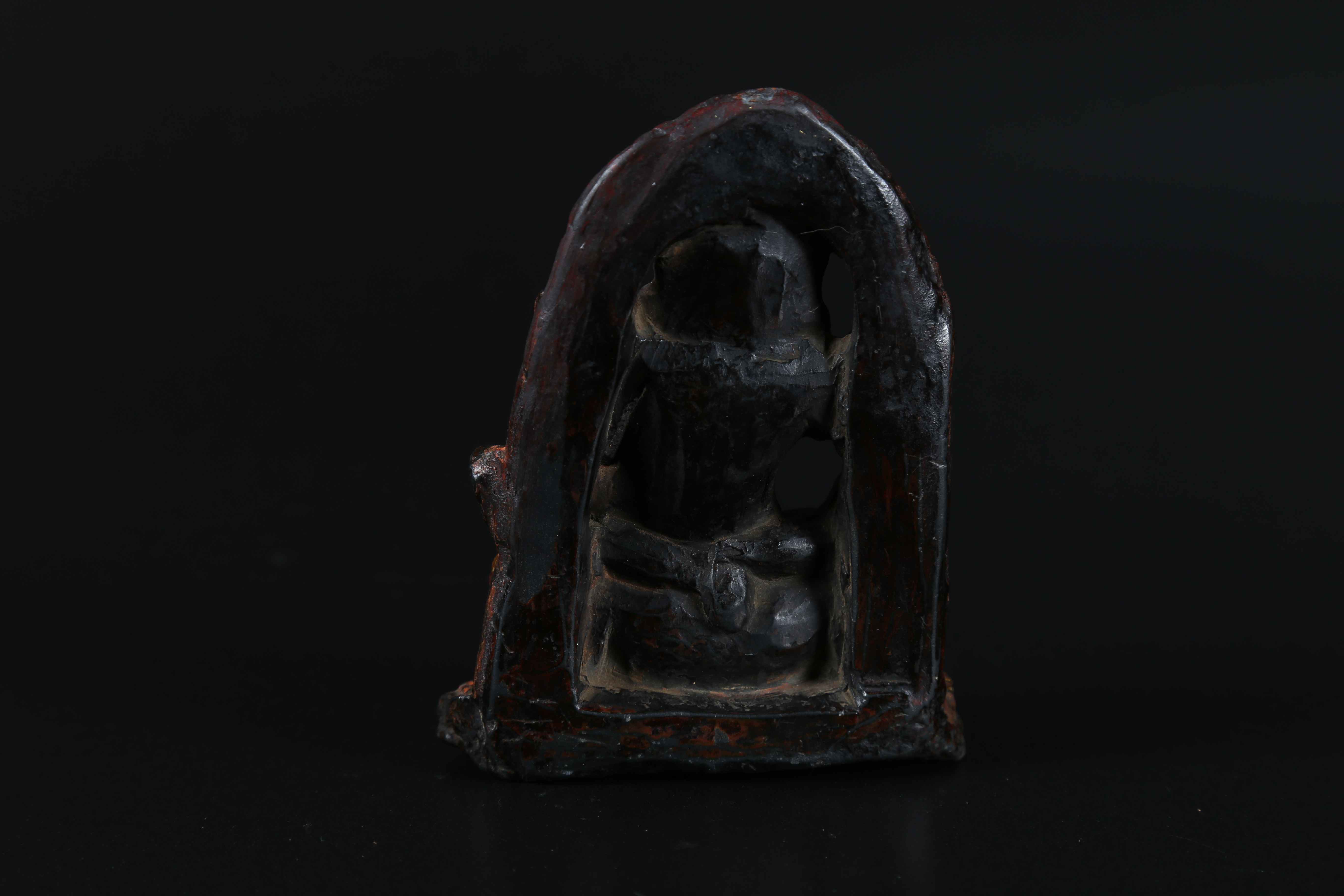 Arte Himalayana Piccola scultura in pietra policroma raffigurante uno dei cinque re Pehar
