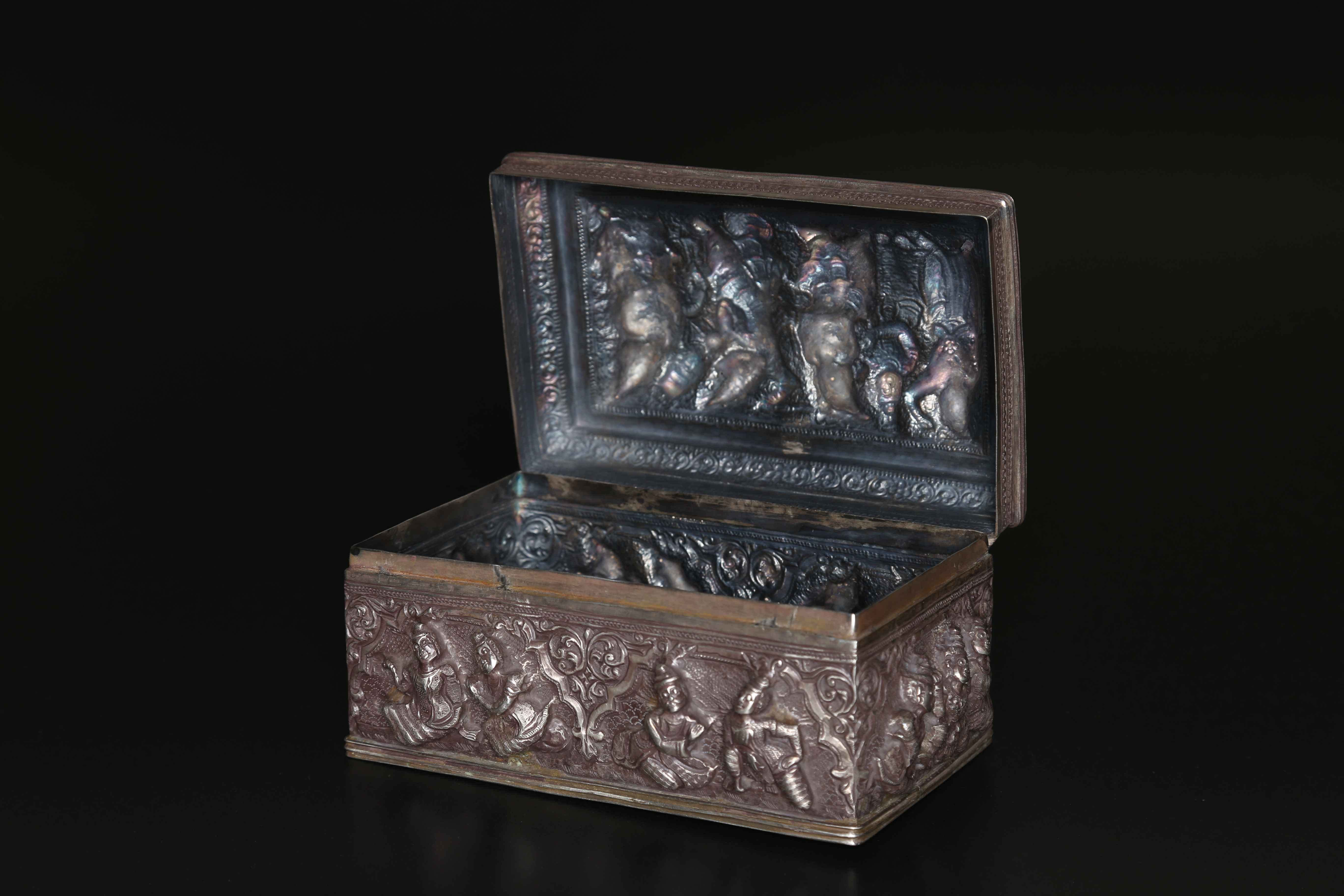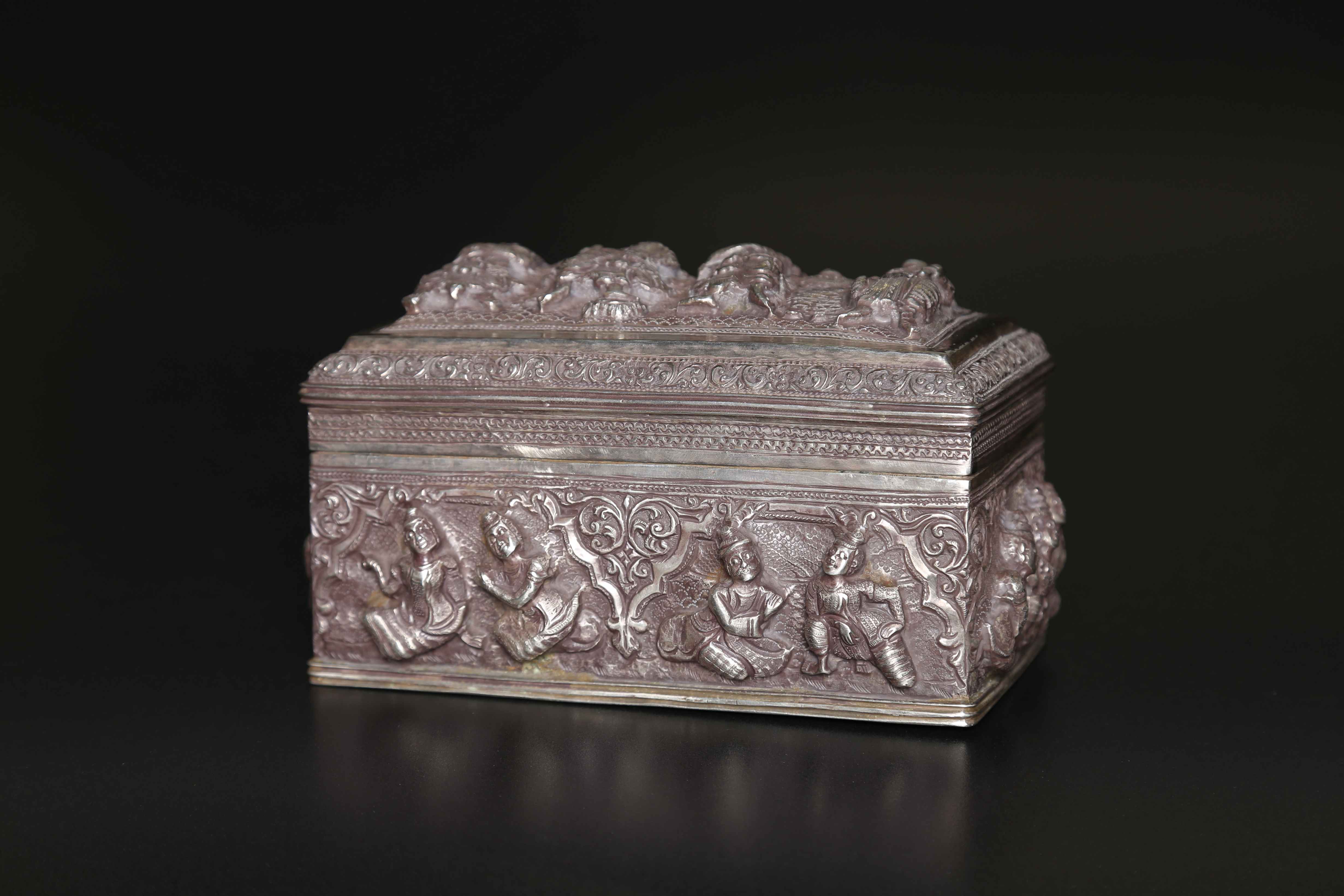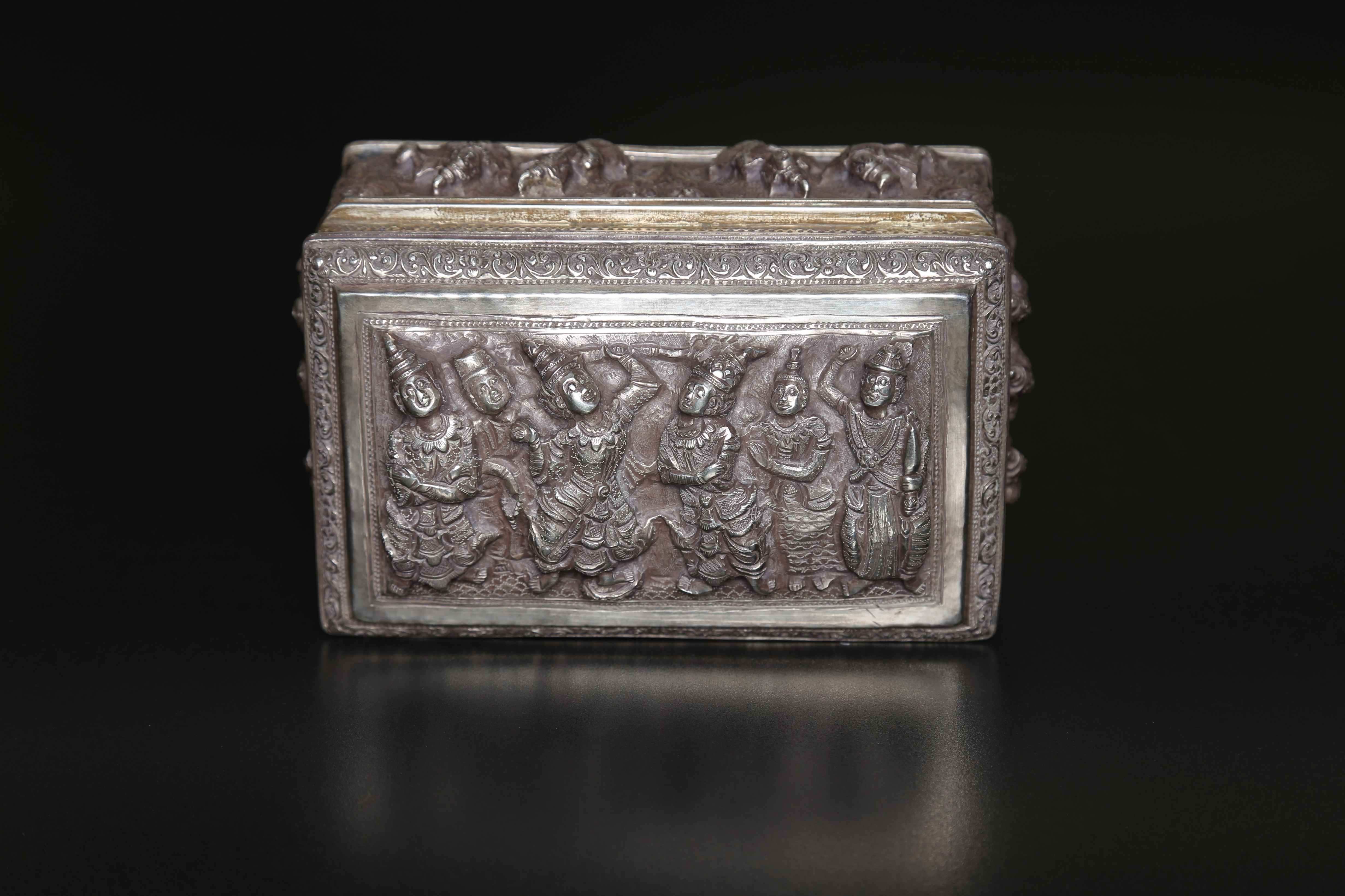 Arte Sud-Est Asiatico A silver embossed jewelry box depicting king Mindon.