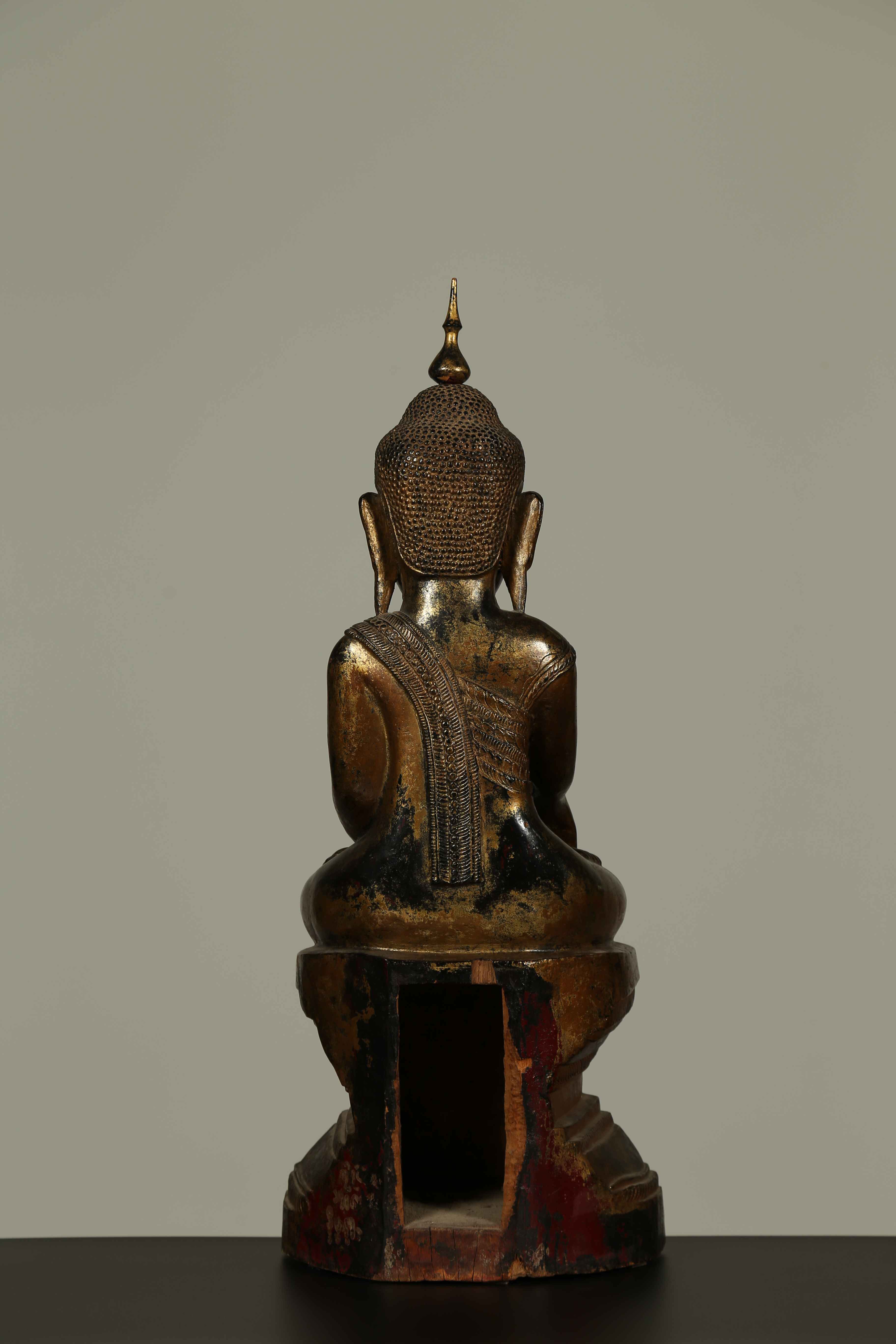 Arte Sud-Est Asiatico Scultura in legno laccato scuro raffigurante Buddha...