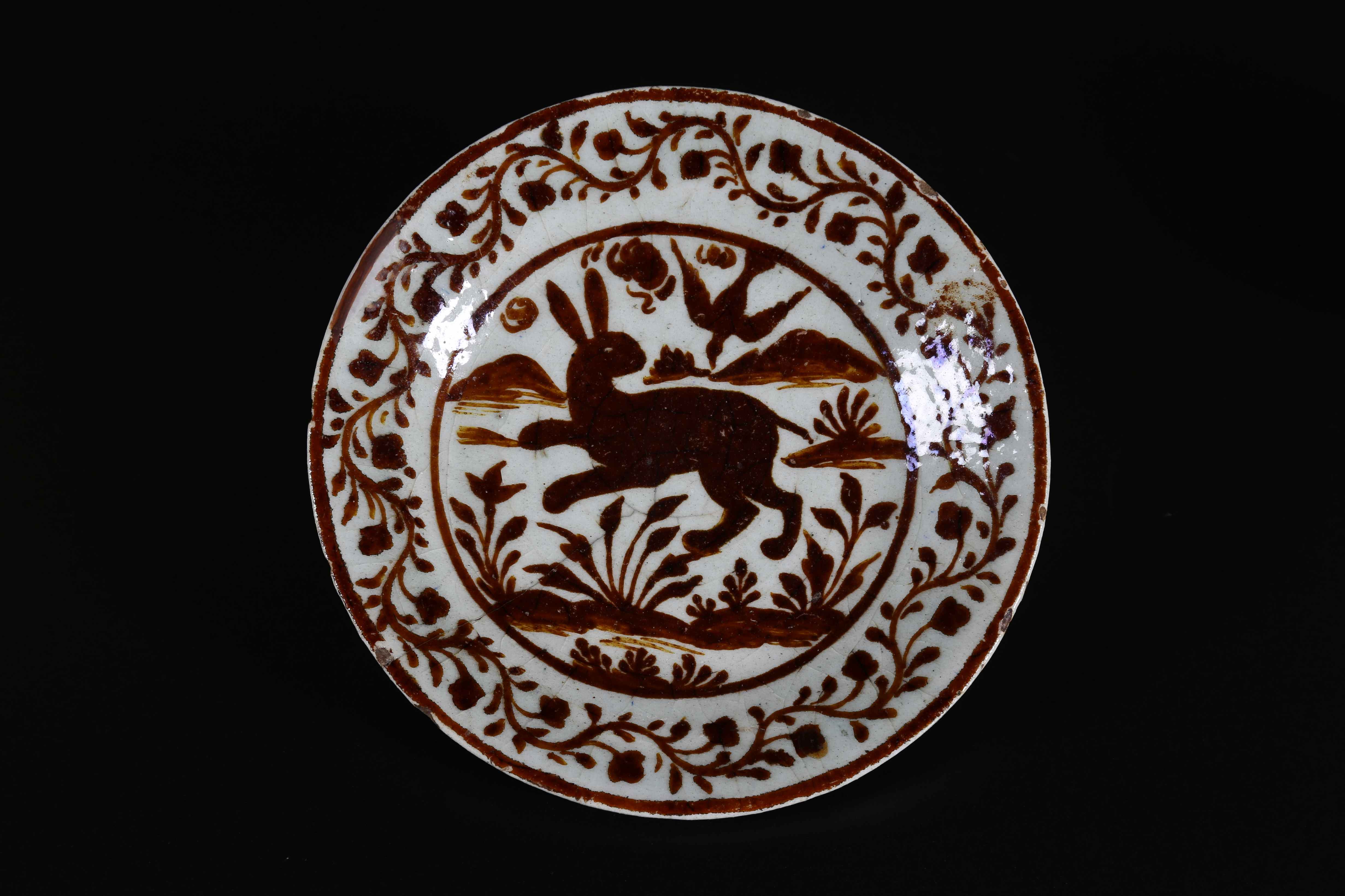 Arte Islamica Piatto in ceramica dipinta a lustro raffigurante un coniglio