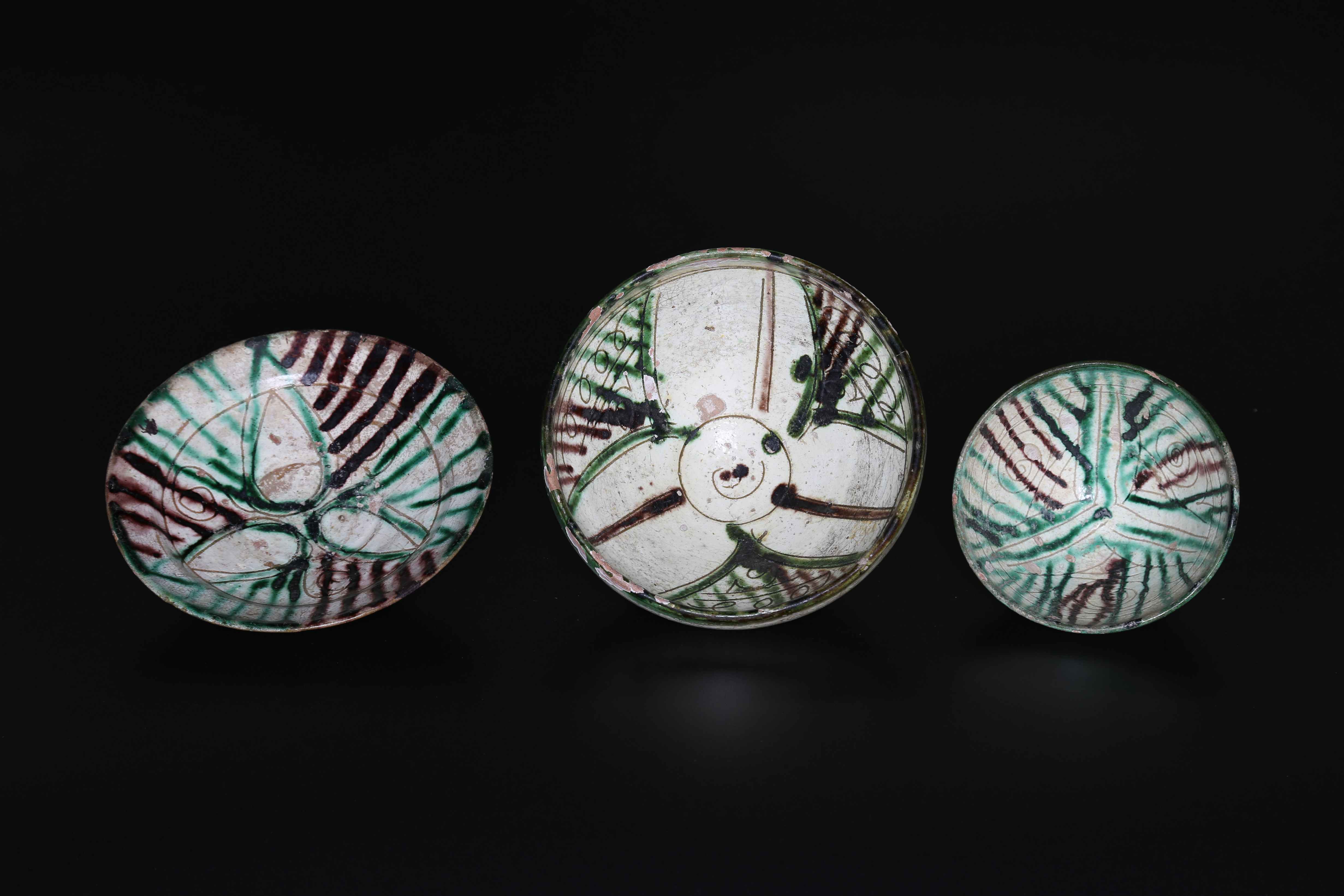 Arte Islamica Gruppo di tre ciotole con decoro splash Iran Orientale, X...
