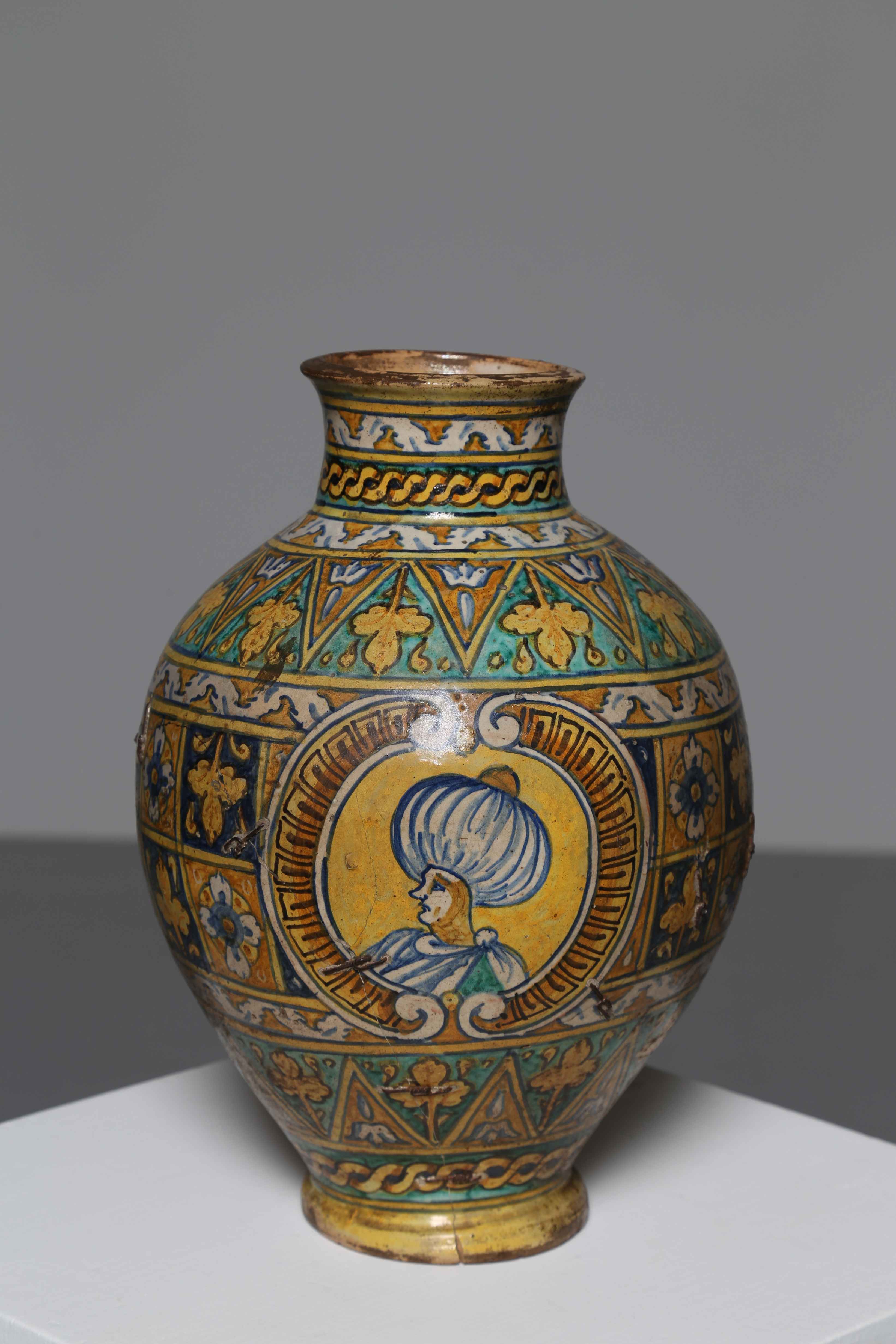 Arte Islamica Vaso in maiolica con effige di un turco Palermo, XVI secolo...