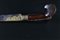 Arte Islamica Yatagan con fodero in pelle e argento sbalzato, datata 1270 (1849) Turchia, dinastia Ottomana, XIX secolo. -. Cm 112,00. Bello Yatagan con impugnatura in legno abbellita da lastra in oro lavorata a sbalzo recante motivi vegetali che continua sulla parte superiore della lama che mostra un'incisione con arabeschi ed una cartuccia rettangolare nel mezzo con iscrizione: proprietà di Ahmad 1270 (1849) Il fodero in pelle sfoggia le estremità decorate con una lamina d'argento sbalzata con motivi floreali e puntinati.