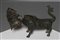 Arte Islamica Incensiere in bronzo traforato a forma di felino con tracce di intarsi in argento