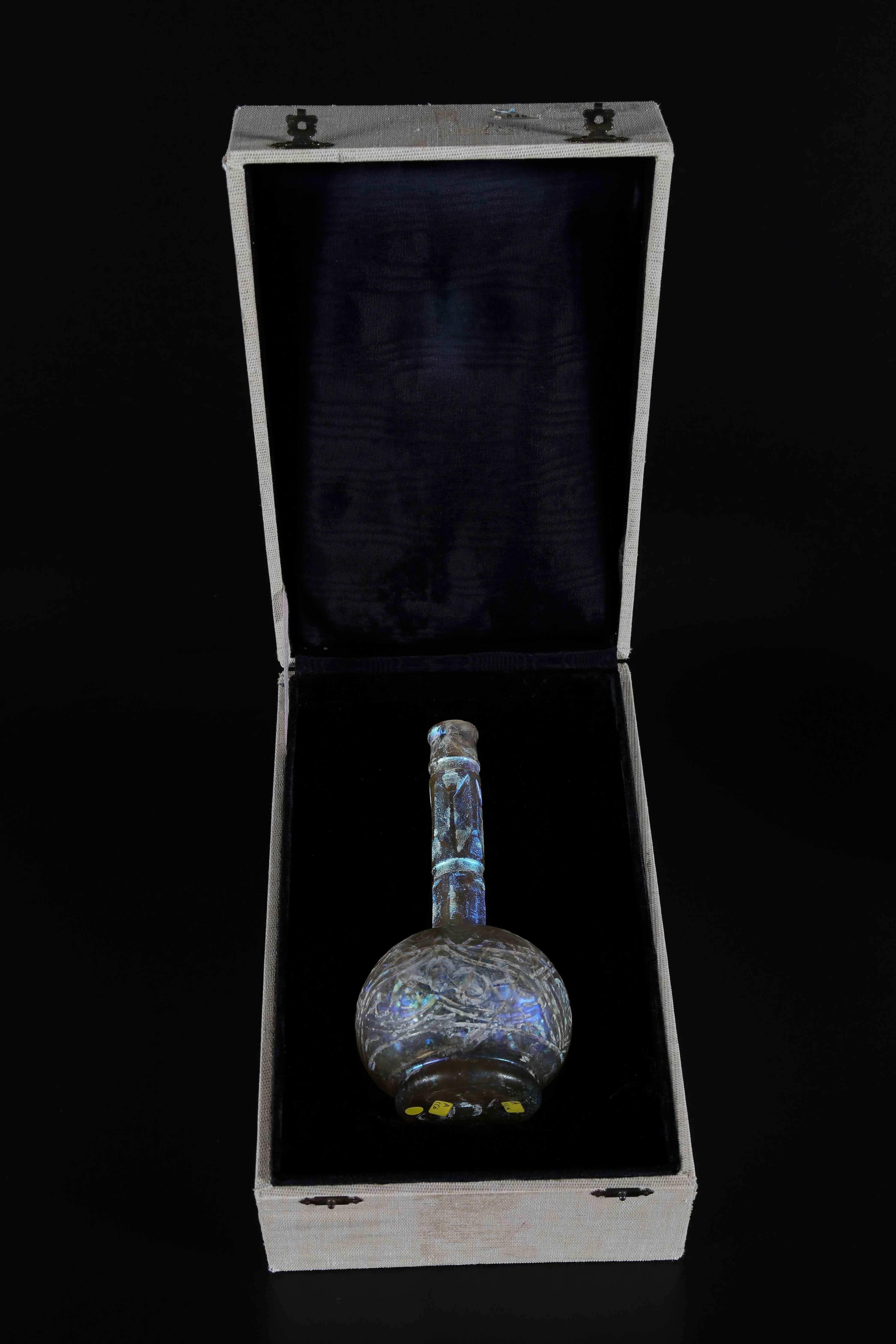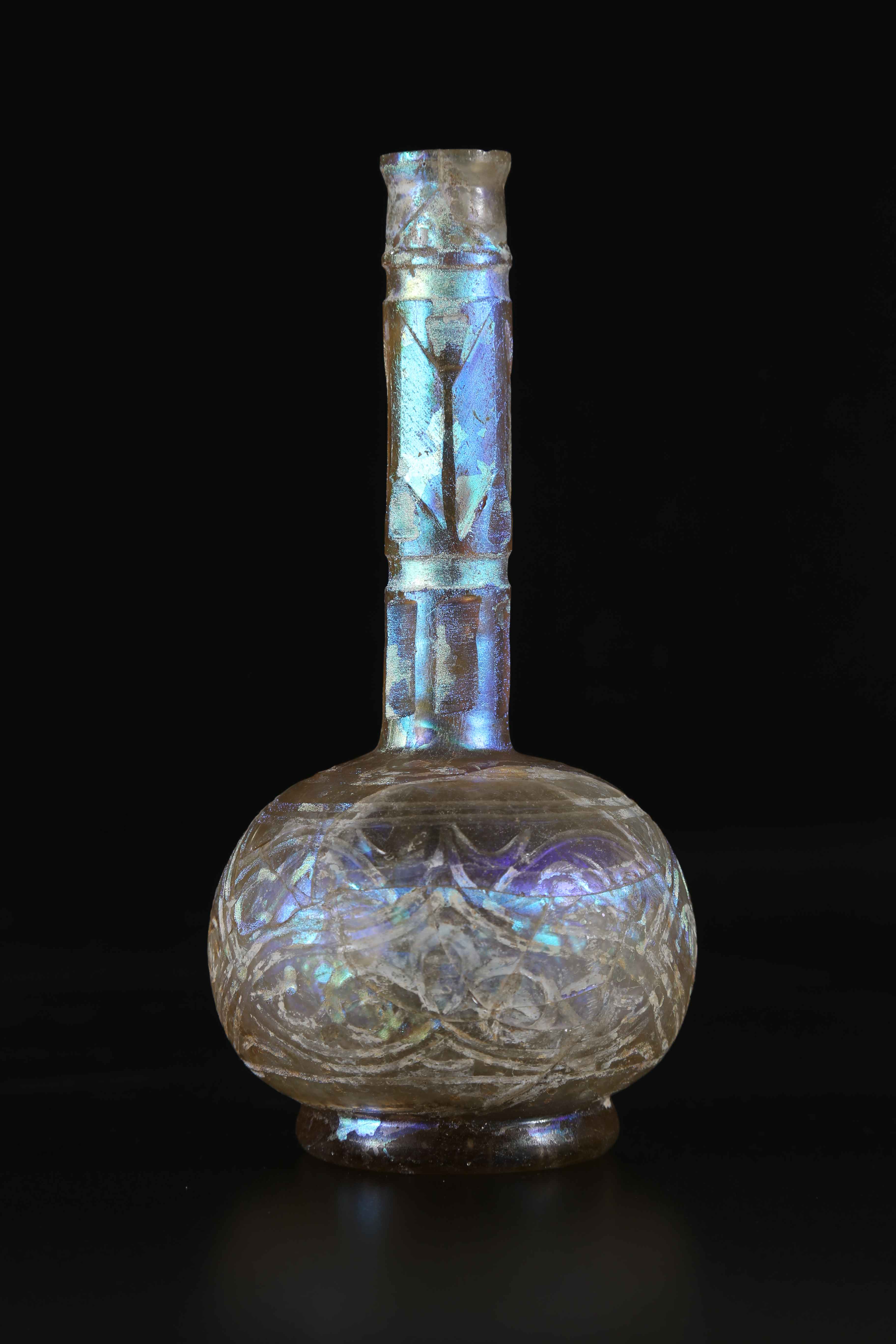 Arte Islamica Bottiglia in vetro molato Iran, VIII - X secolo. . Cm 20,50....