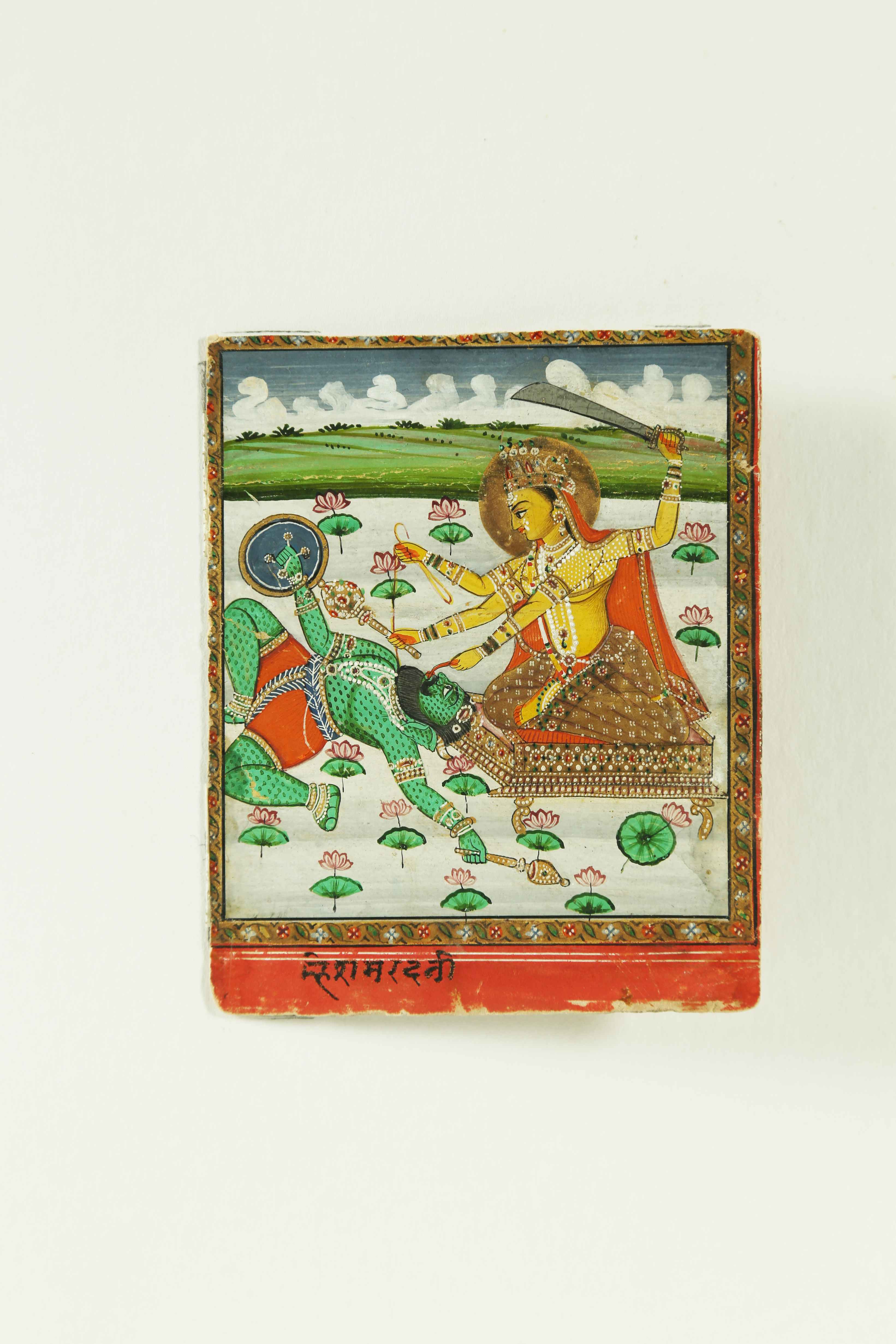Arte Indiana Miniatura raffigurante Bagalamukhi che uccide Madan India,...