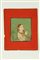 Natural colours and gold on paper. . Cm 16,00 x 13,00. Inside a red frame and against a plain green background there is a woman, with a golden halo, praying.