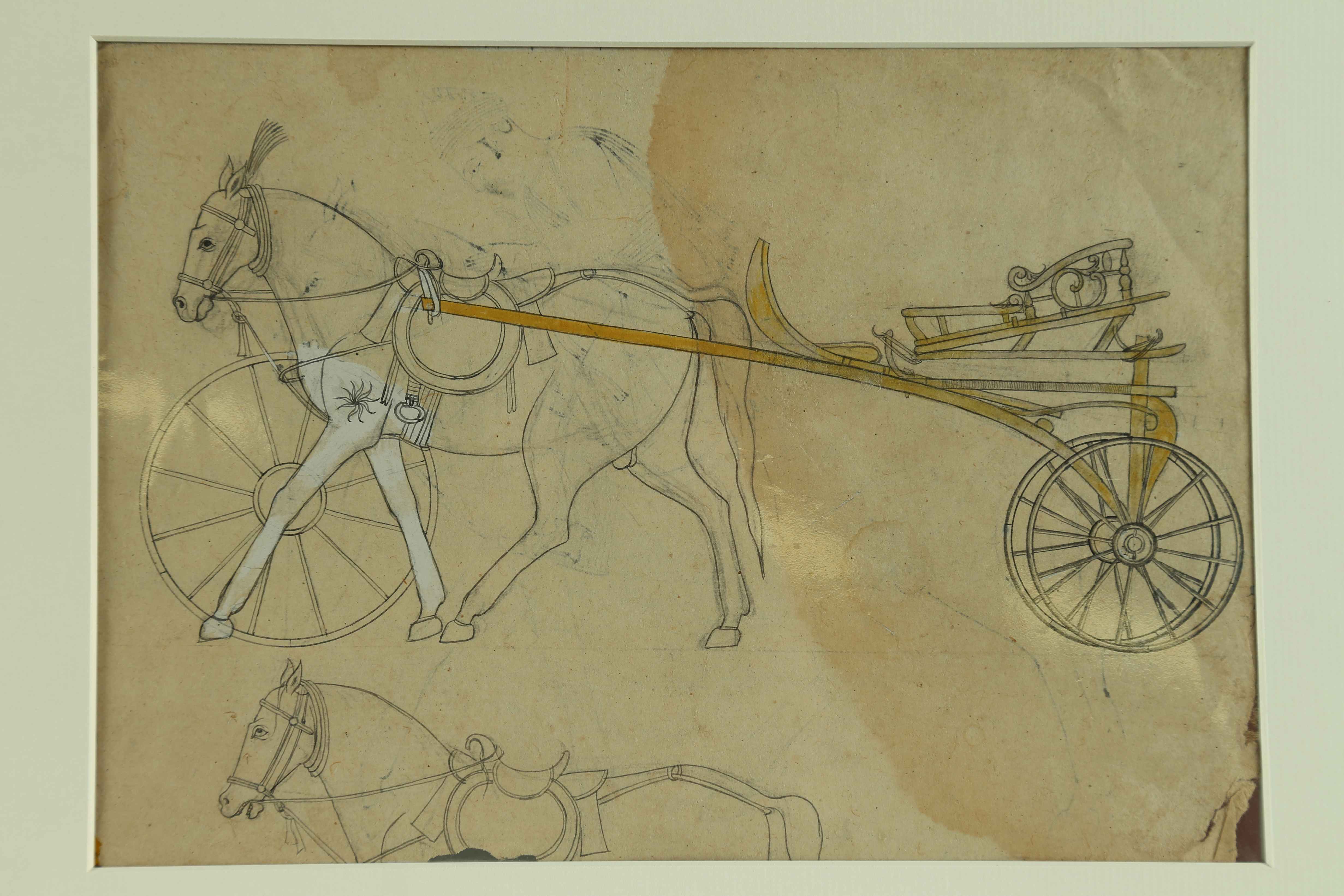 Arte Indiana Disegno preparatorio fronte e retro raffigurante cavalli e...
