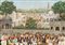 India, seconda metà XX secolo. -. Cm 33,00 x 23,00. Grande miniatura nello stile company school raffigurante i festeggiamenti per l'indipendenza. Una cinta muraria con due edifici simmetrici alle estremità divide in due il dipinto: la parte alta mostra il giubilo popolare, mentre in basso due file ordinate ospitano i capi di stato e personaggi illustri, tra cui Gandhi, riuniti.