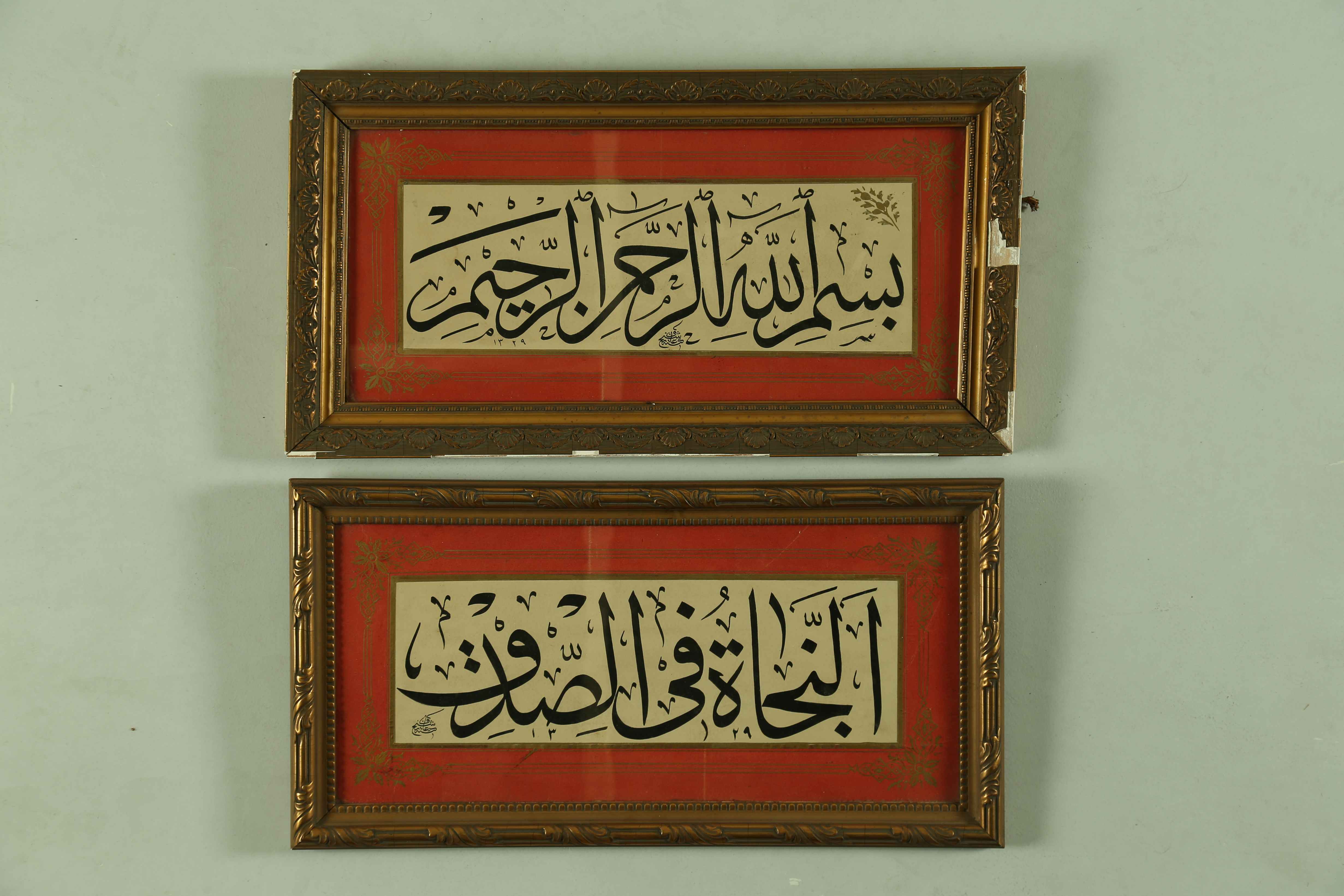 Arte Islamica A pair of modern calligraphy paintings signed by Aa Fiat and dated 1329 (1907)
