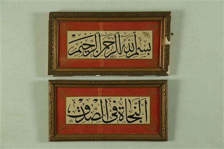 Arte Islamica Coppia di calligrafie Iran oTurchia, XX secolo, firmate Sheik...