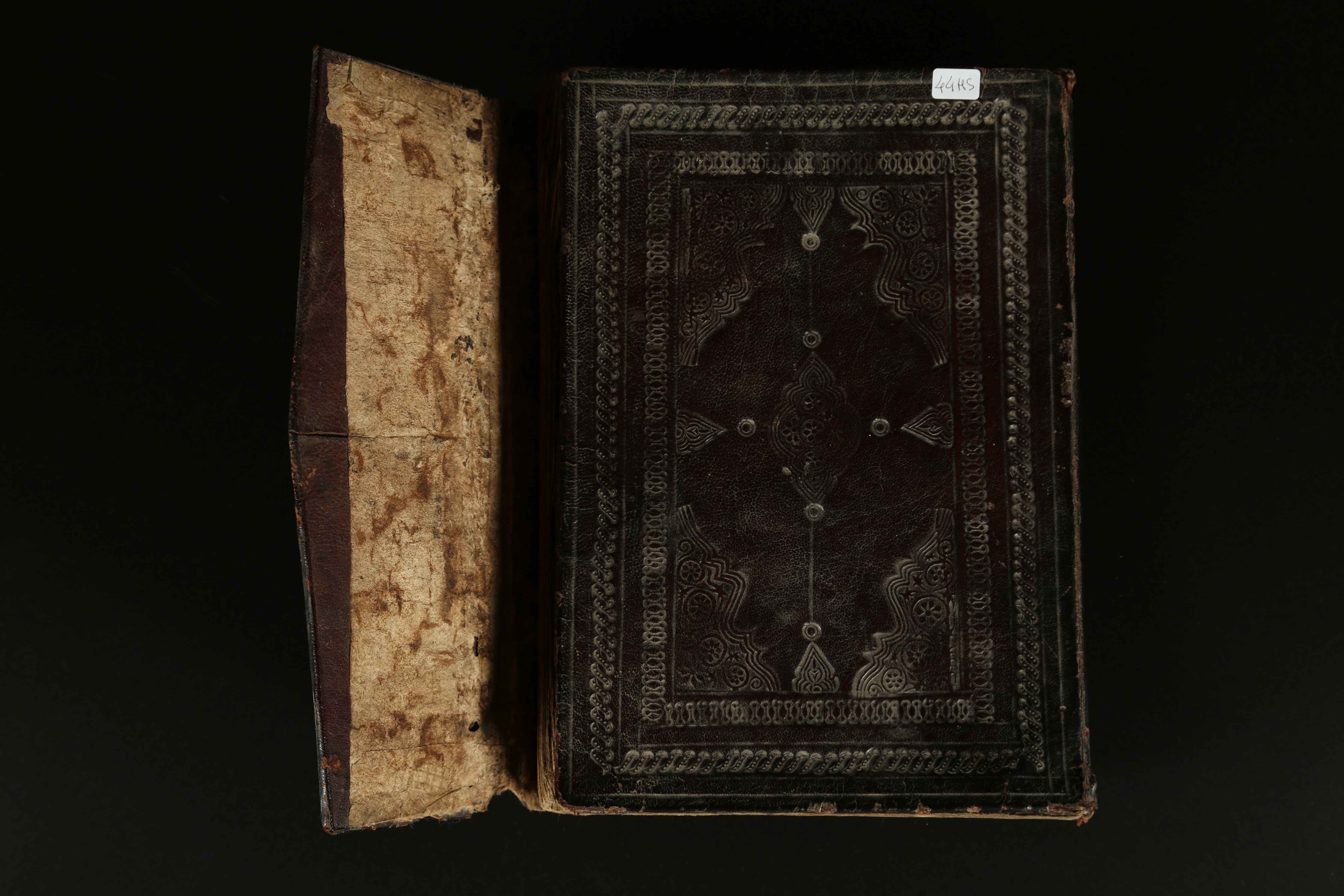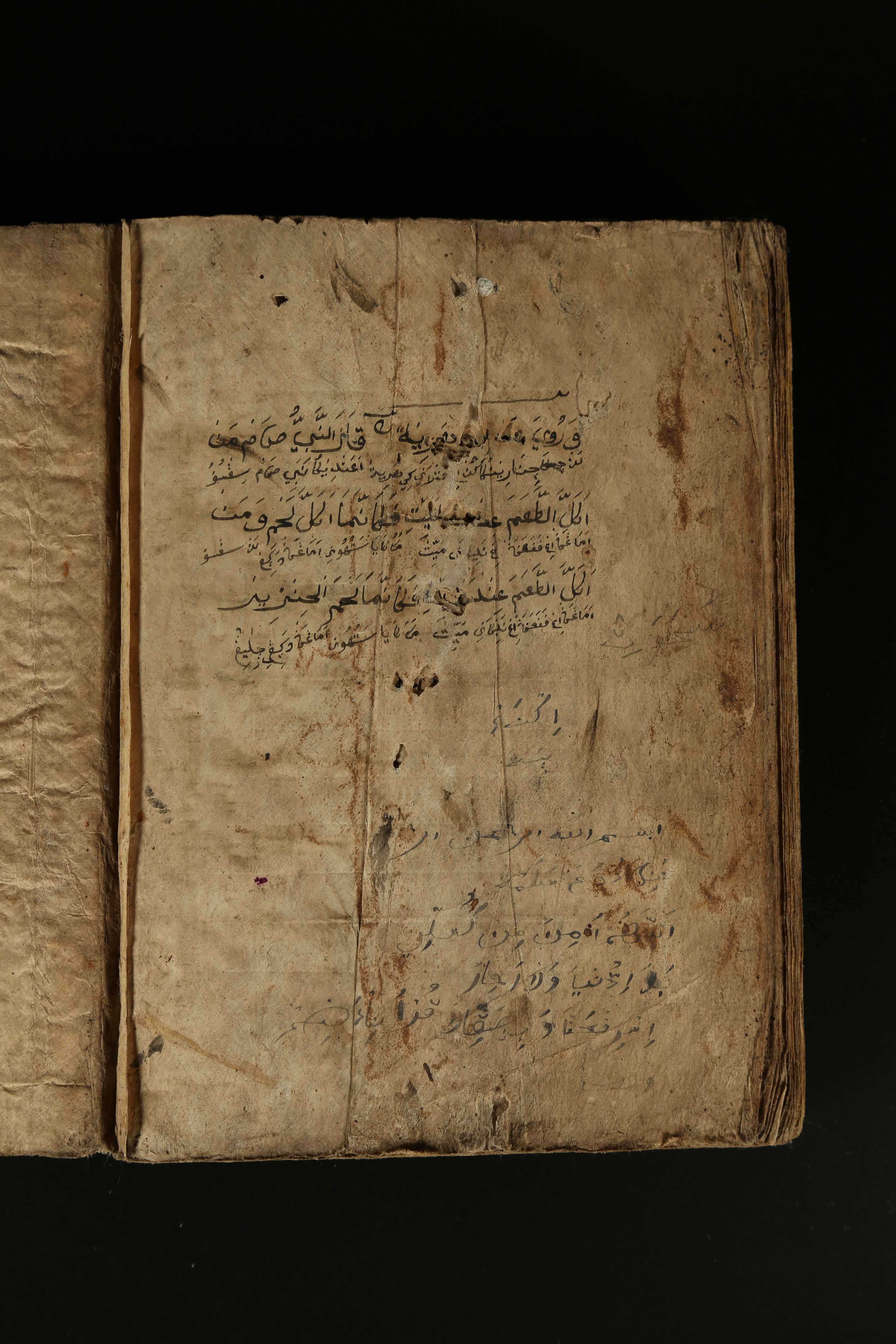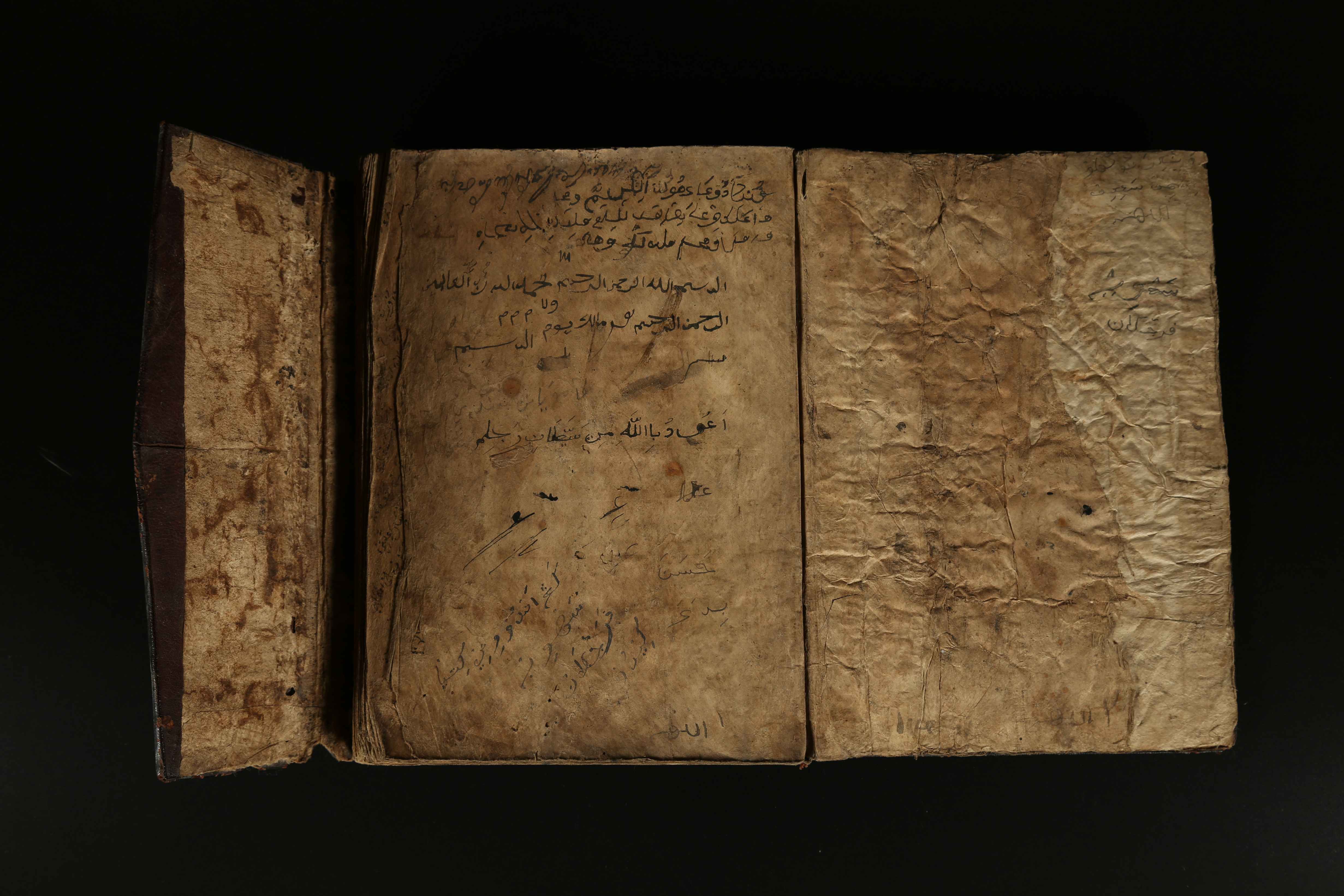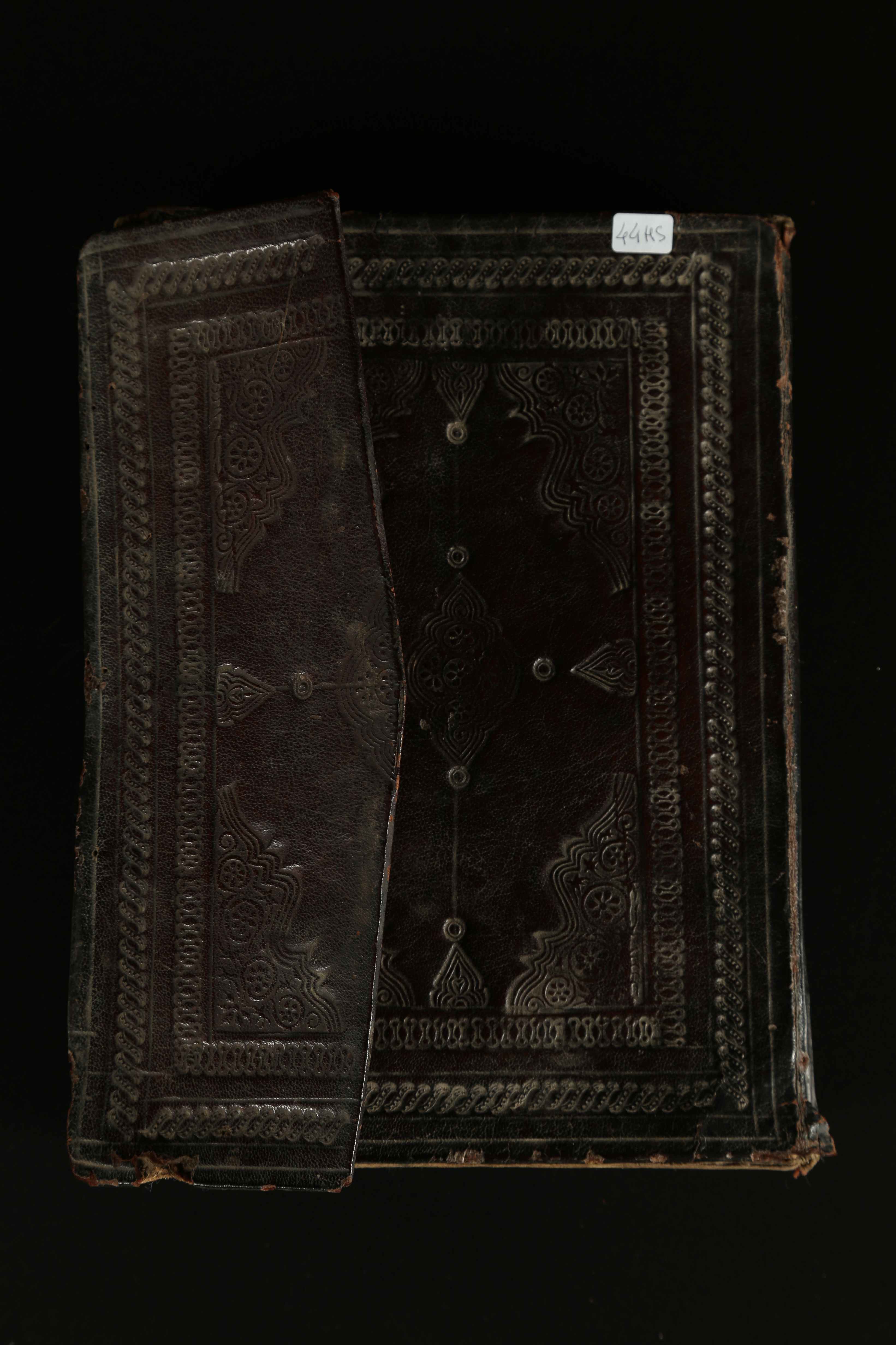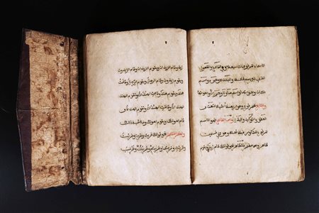 Egitto (?), XIX secolo. -. Cm 19,00 x 25,50. Il libro è rilegato in pelle scura impressa con motivi floreali ed aletta e contiene pagine di carta vegetale scritte in arabo con curiose note dello studente nei margini.