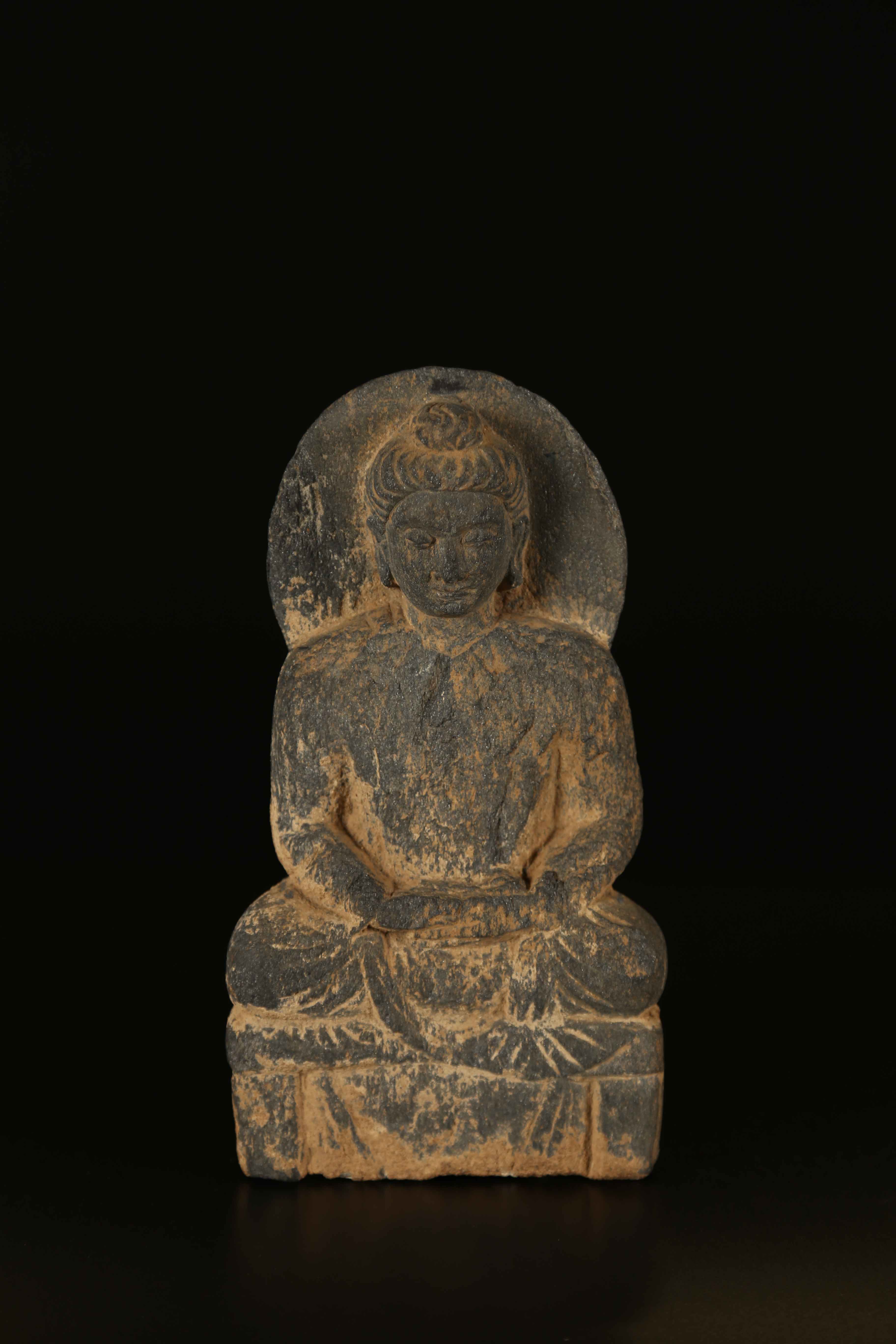 Arte Indiana A small grey schist sculpture depicting Buddha