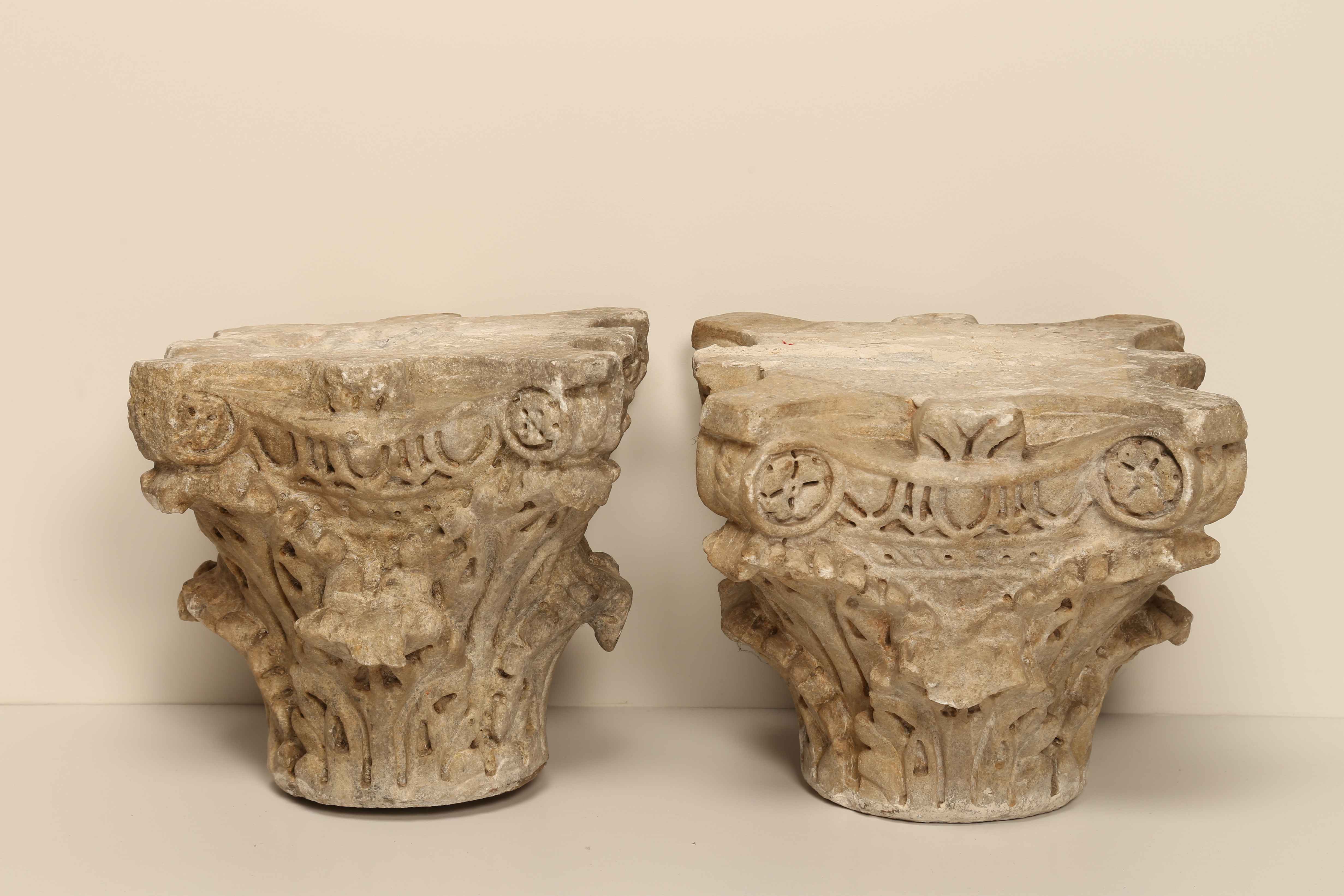 Arte Islamica A couple of Spanish white carved marble capitals