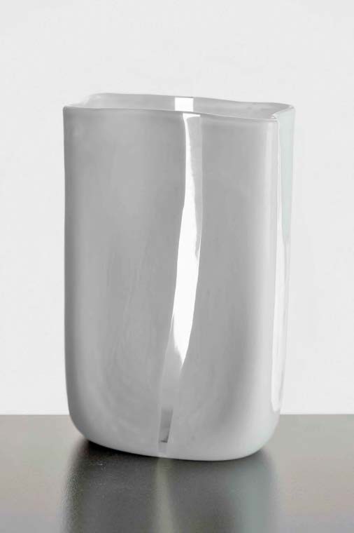 VENINI DISEGNO TONI ZUCCHERI Vaso a sezione rettangolare in vetro lattimo con...