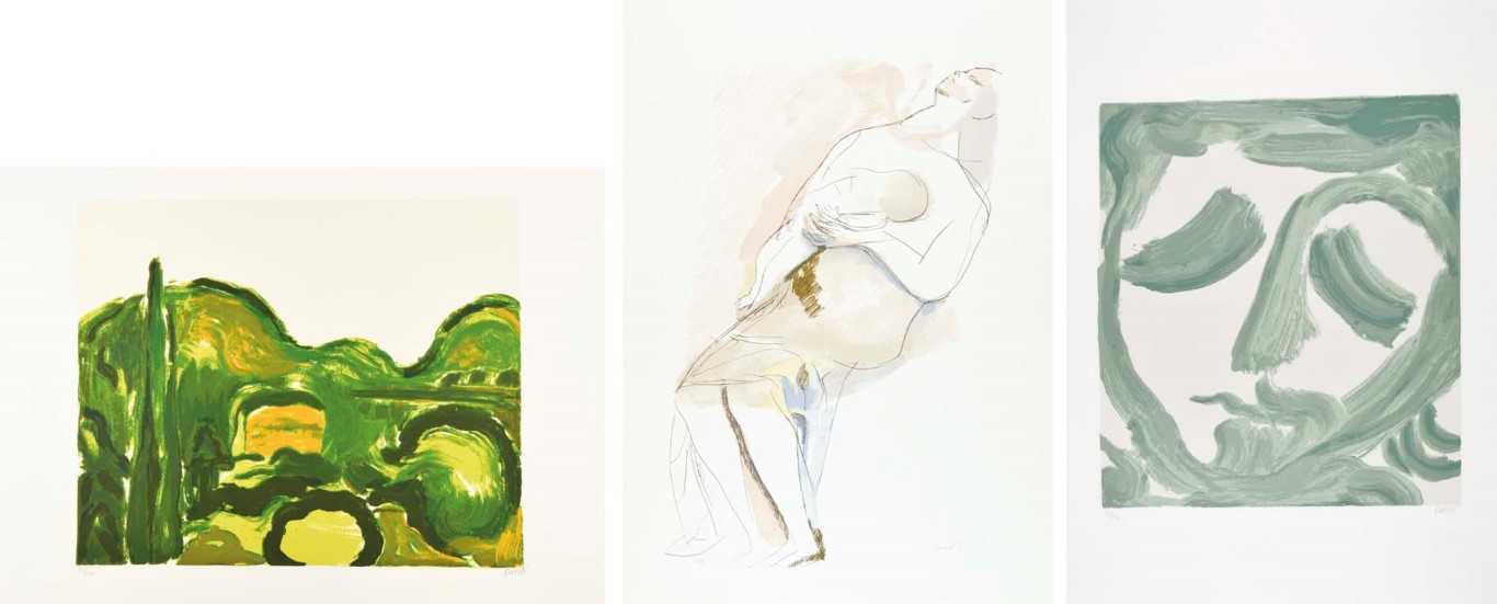 GUIDI V. - SAETTI B. Soggetti vari lotto di 3 litografie 50x70 cad. tutte firmate e numerate in basso V. Guidi: Paesaggio romano es. 33/120 V. Guidi: Volto es. 24/120 B. Saetti: Maternità es. 3/99