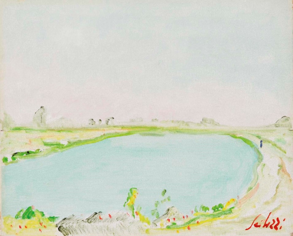 SEIBEZZI FIORAVANTE Venezia 1906 - 1975 Laguna olio su tela 25x30 firma in...