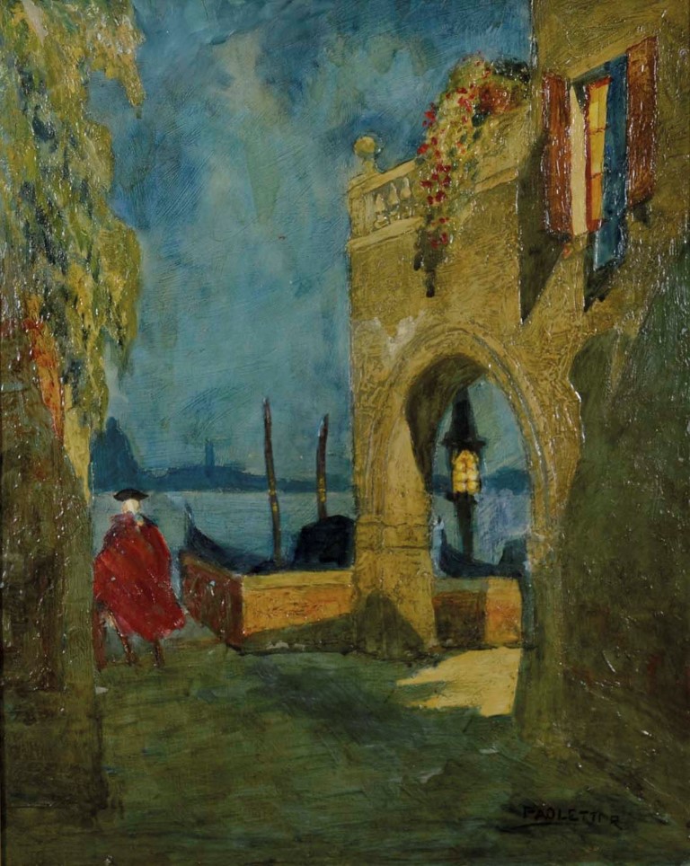 PAOLETTI RODOLFO Venezia 1866 - 1930 Scena veneziana olio su tavola 50x40...